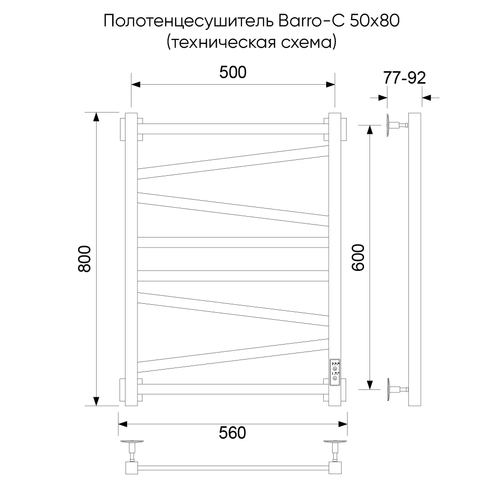 Полотенцесушитель электрический Veconi Barro-C П8 500x800 мм B8050B-C, чёрный фото