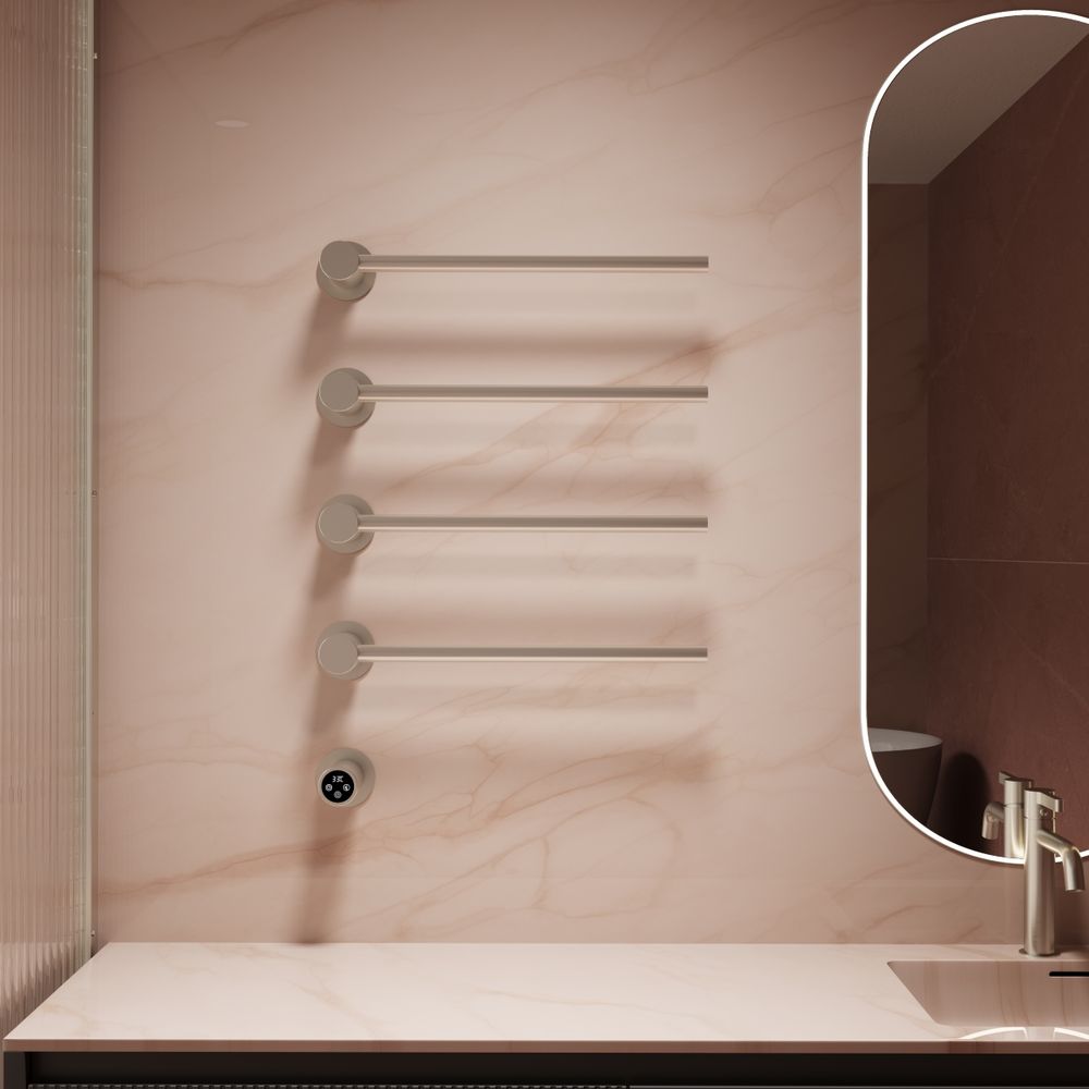 Полотенцесушитель электрический Vincea VTD-2H1BN, размер 532x670 мм, 4 перекладины, мощность 40 Вт, цвет никель брашированный. Скрытое подключение.