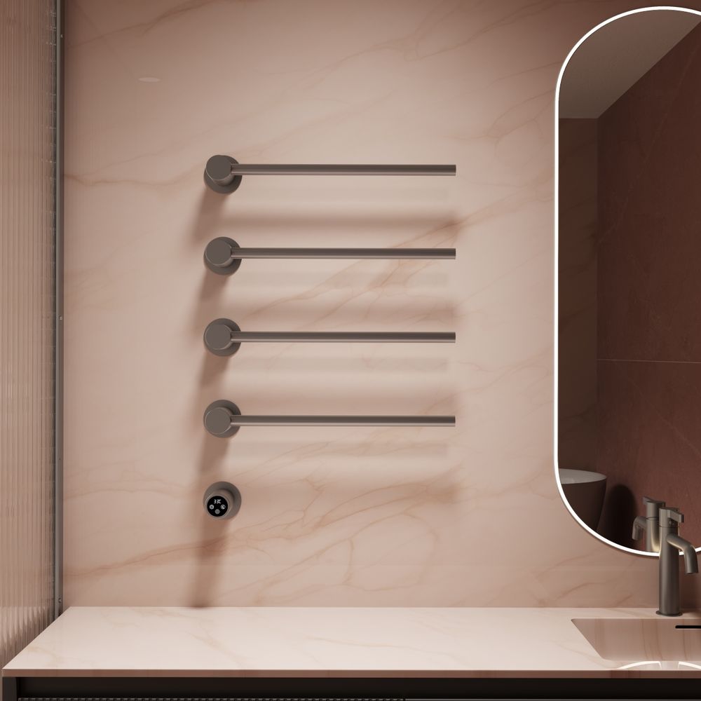 Полотенцесушитель электрический Vincea VTD-2H1GM, размер 532x670 мм, 4 перекладины, мощность 40 Вт, цвет вороненая сталь. Скрытое подключение.