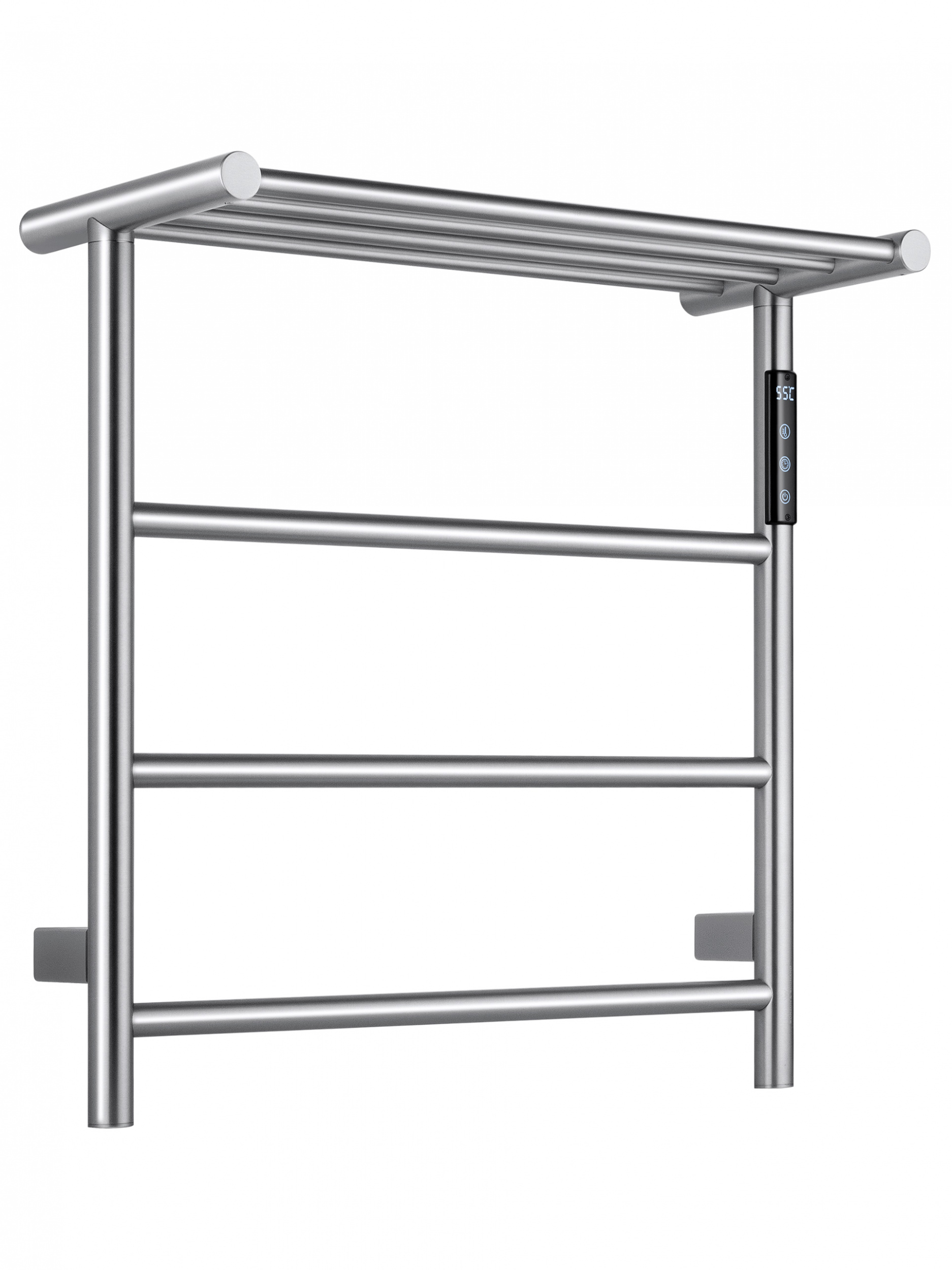 Полотенцесушитель электрический Wonzon & Woghand Bonn с полкой WW-AL402-BR, размер 475x500 мм, 4 перекладины, мощность 60 Вт, цвет никель.