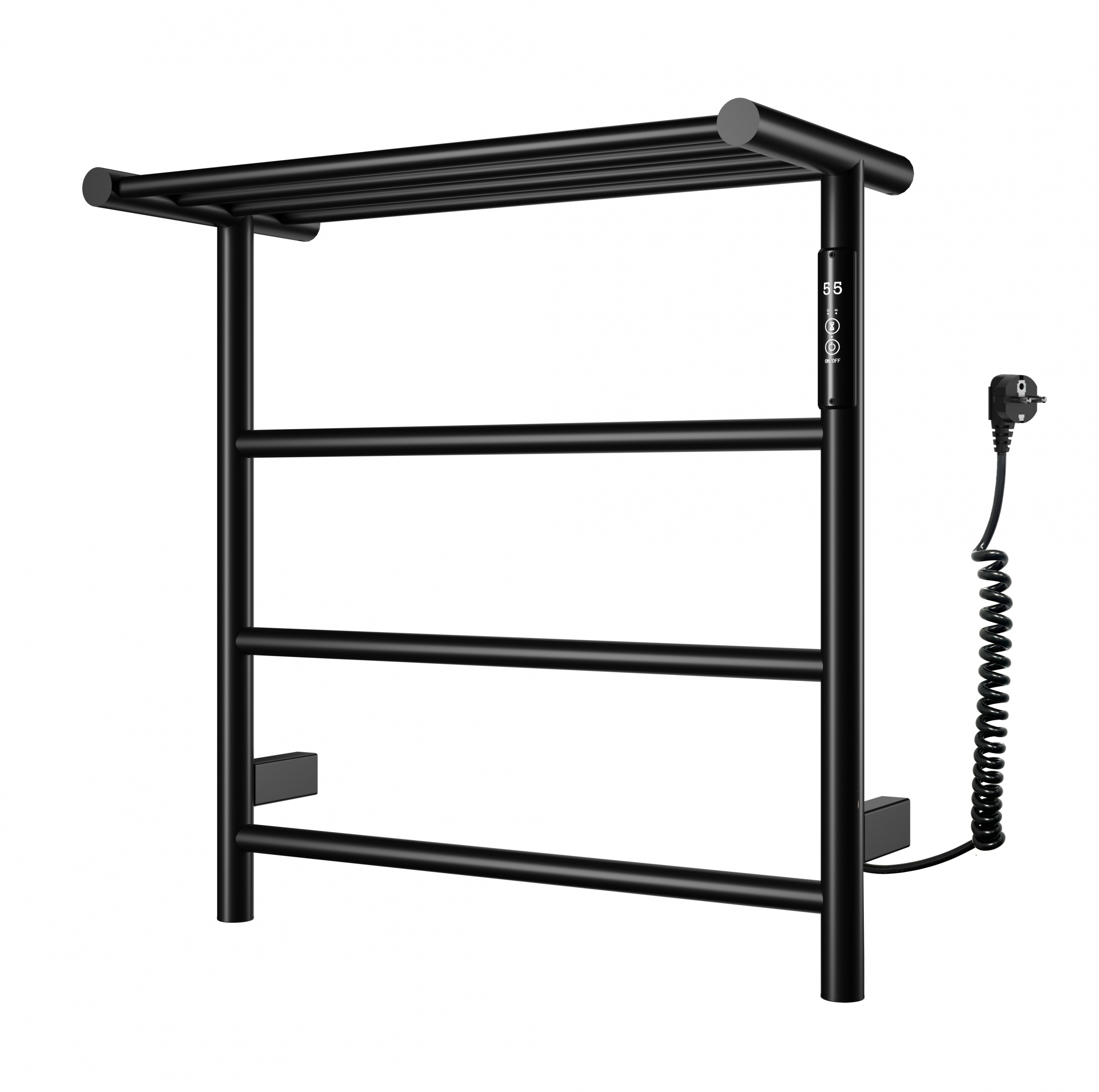 Полотенцесушитель электрический Wonzon & Woghand Bonn с полкой WW-AL402-MB, размер 475x500 мм, 4 перекладины, мощность 60 Вт, цвет чёрный.