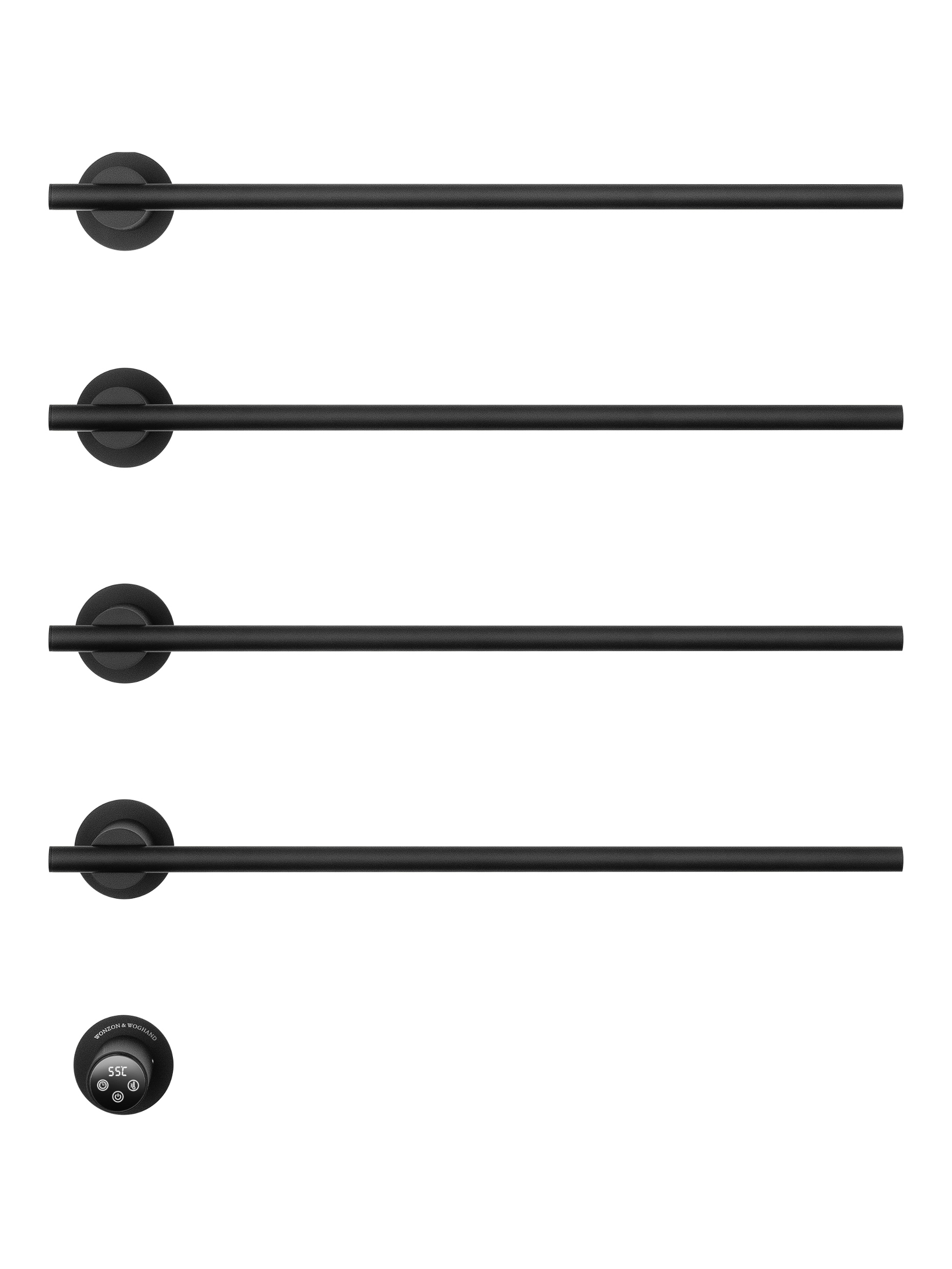 Полотенцесушитель электрический Wonzon & Woghand Dortmund WW-A364-MB, размер 584x610 мм, 4 перекладины, мощность 56 Вт, цвет чёрный.
