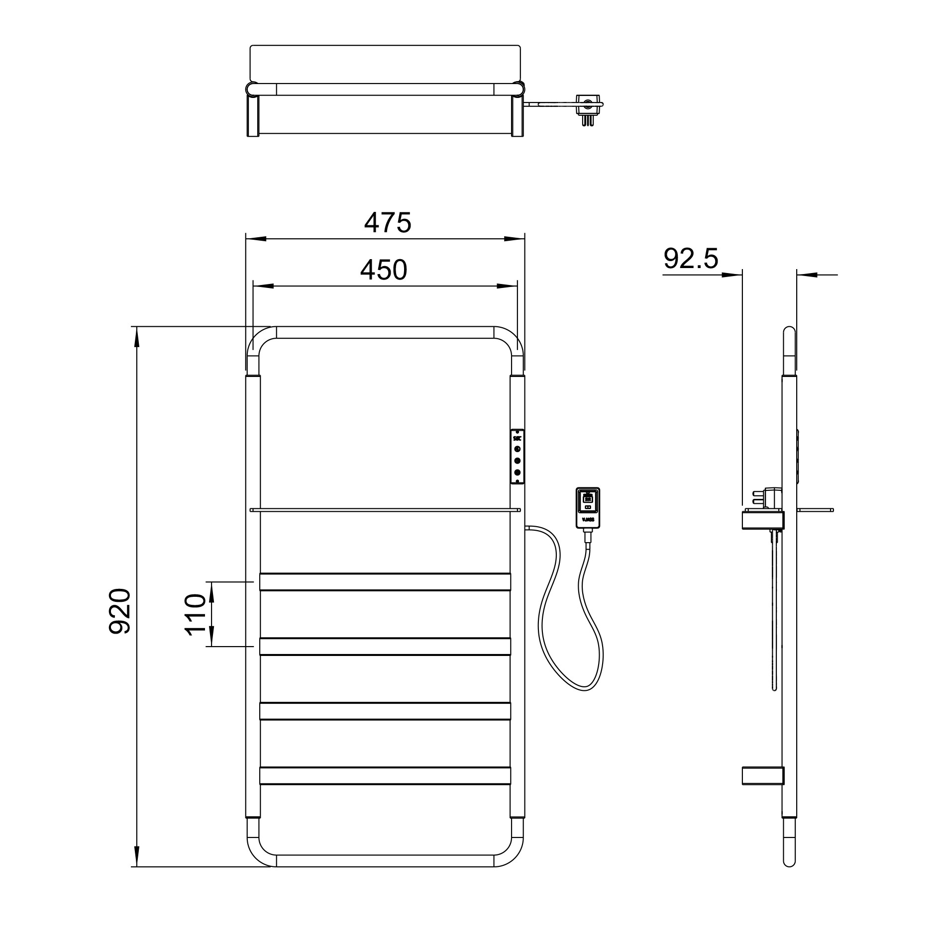 Полотенцесушитель электрический Wonzon & Woghand Düsseldorf П7 450x920 мм WW-A203-MB, чёрный
