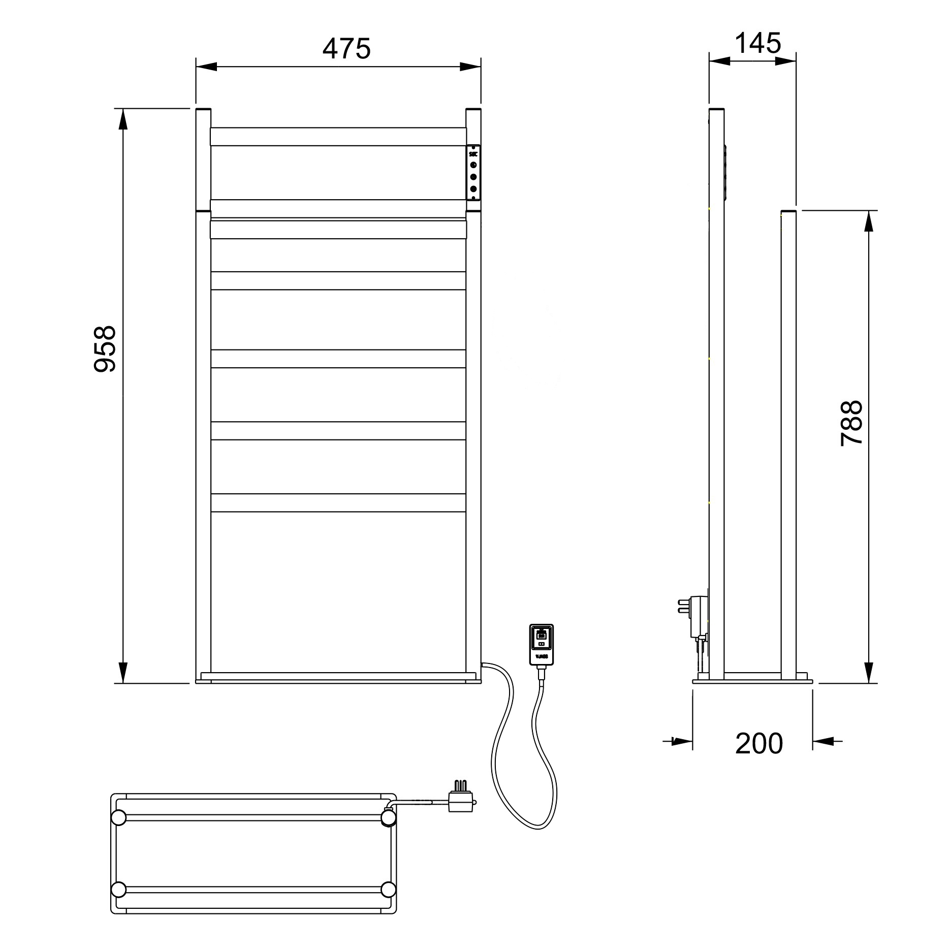 Полотенцесушитель электрический Wonzon & Woghand Essen П7 475x958 мм WW-A407-BR, никель