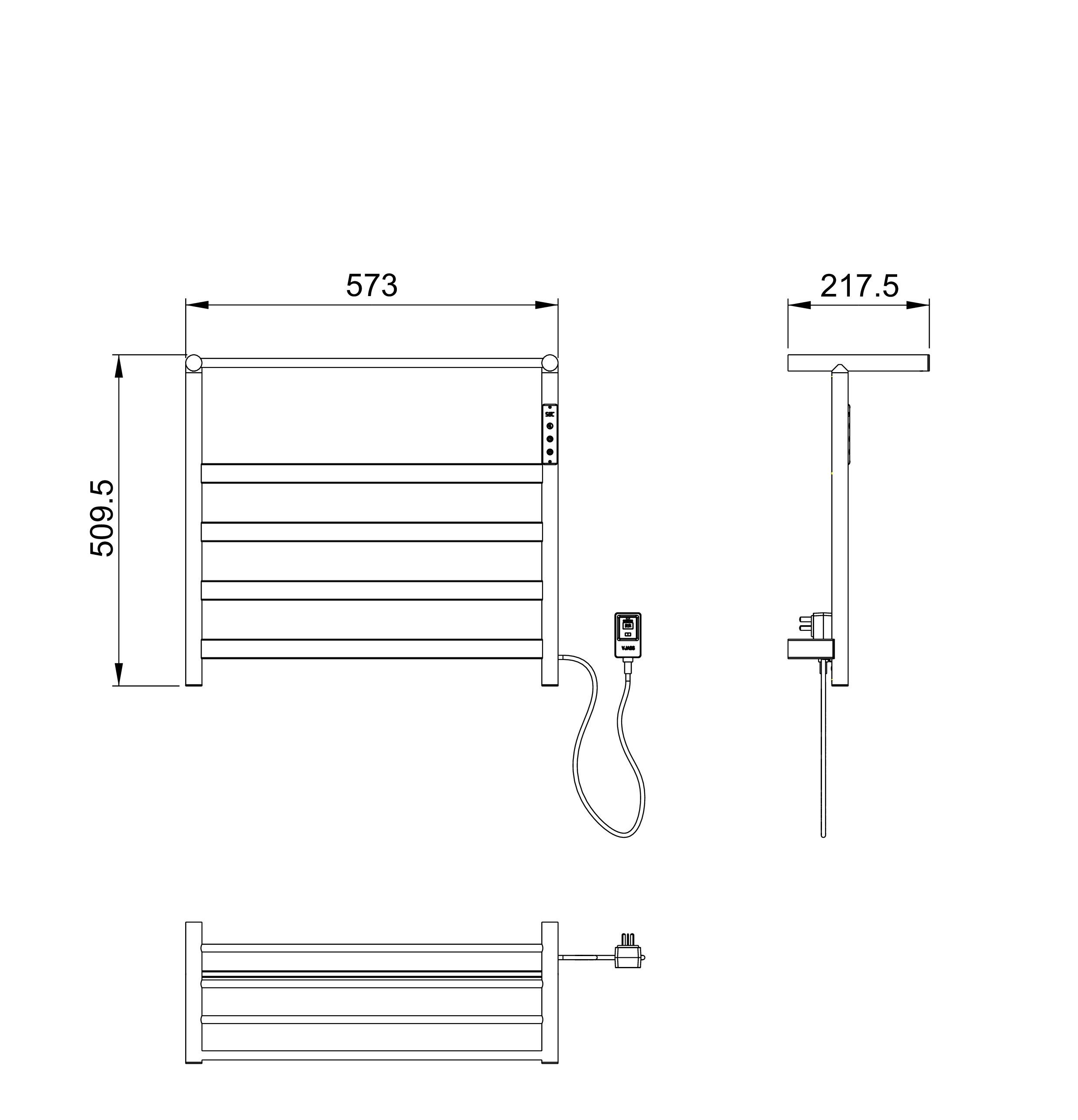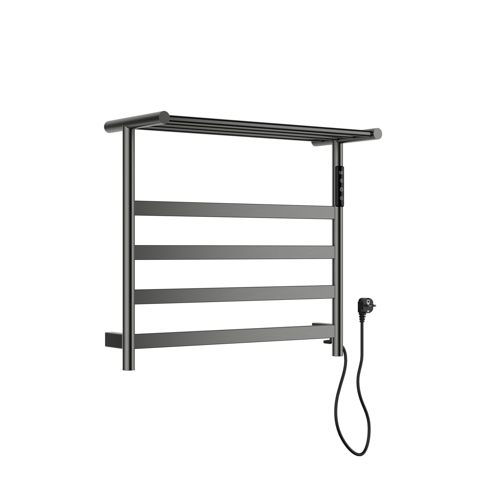Полотенцесушитель электрический Wonzon & Woghand Essen с полкой WW-A402-GM, размер 575x510 мм, 5 перекладин, мощность 75 Вт, цвет тёмный графит.