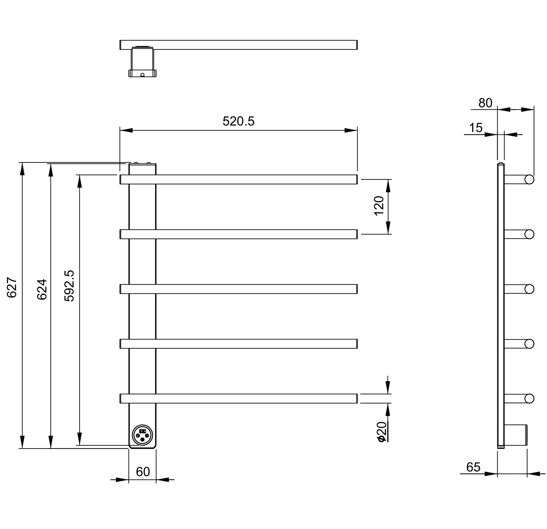 Полотенцесушитель электрический Wonzon & Woghand Nürnberg П5 520x627 мм WW-AL345-BR, никель