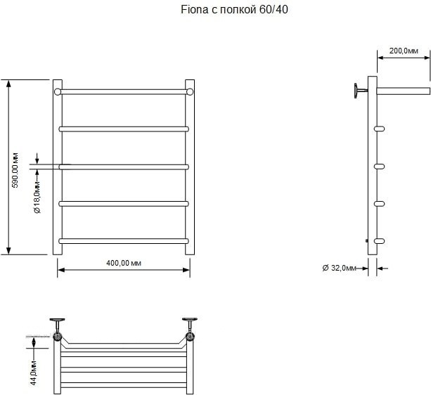 Полотенцесушитель водяной Aquanet Fiona с полкой, 5 перекладин, размер 400х590 мм, цвет хром.