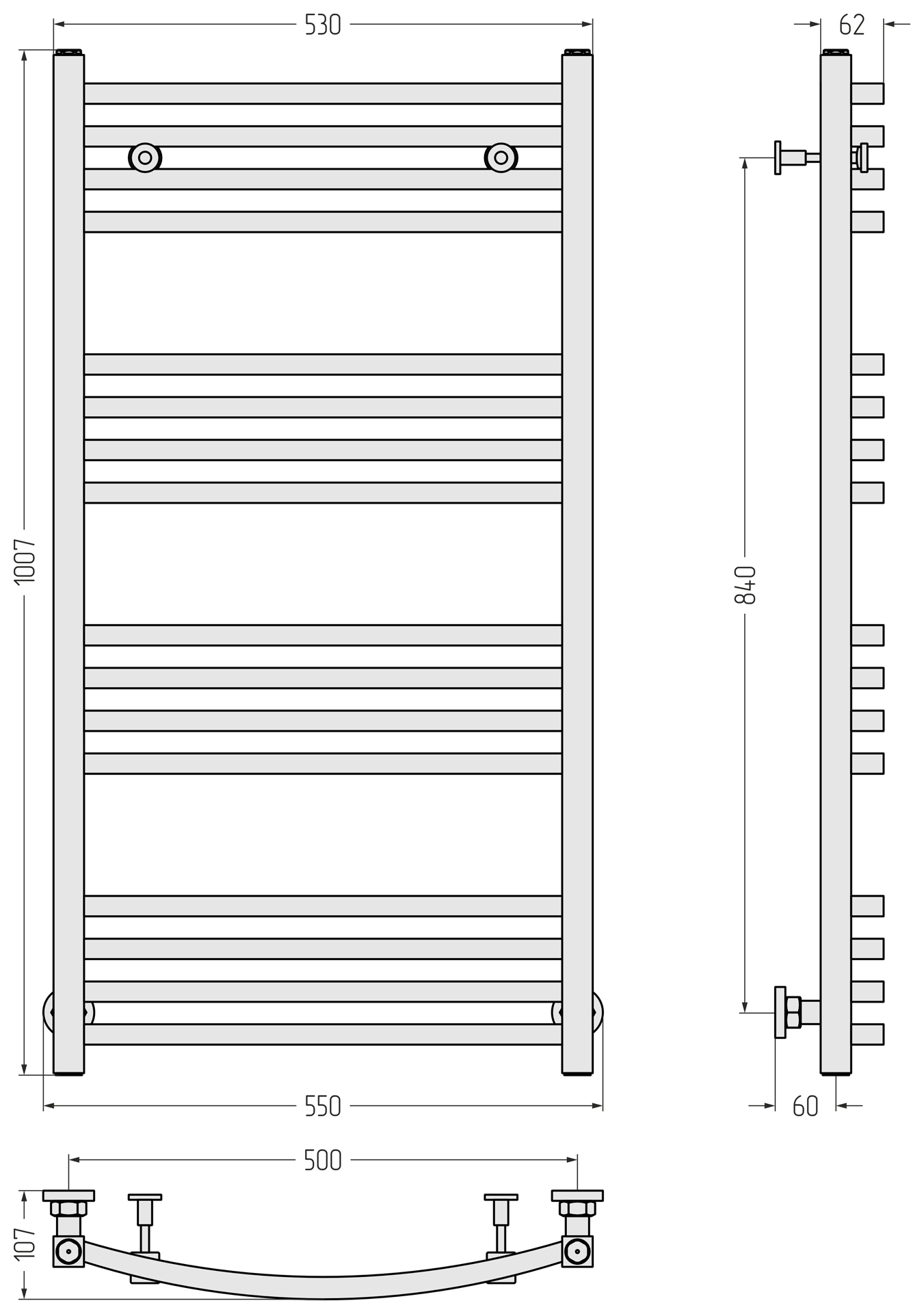 Полотенцесушитель водяной Сунержа Аркус П16 500x1000 мм 31-0251-1050, чёрный матовый