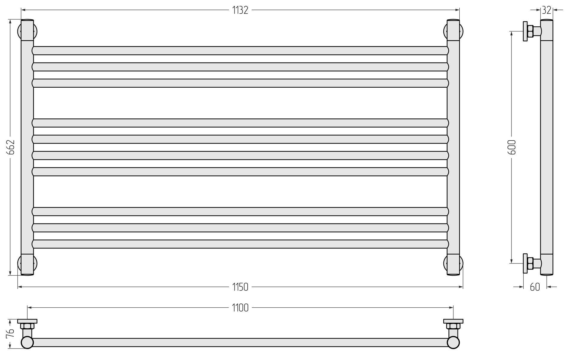 Полотенцесушитель водяной Сунержа Богема L П10 1100x660 мм 071-0202-6011, сатин