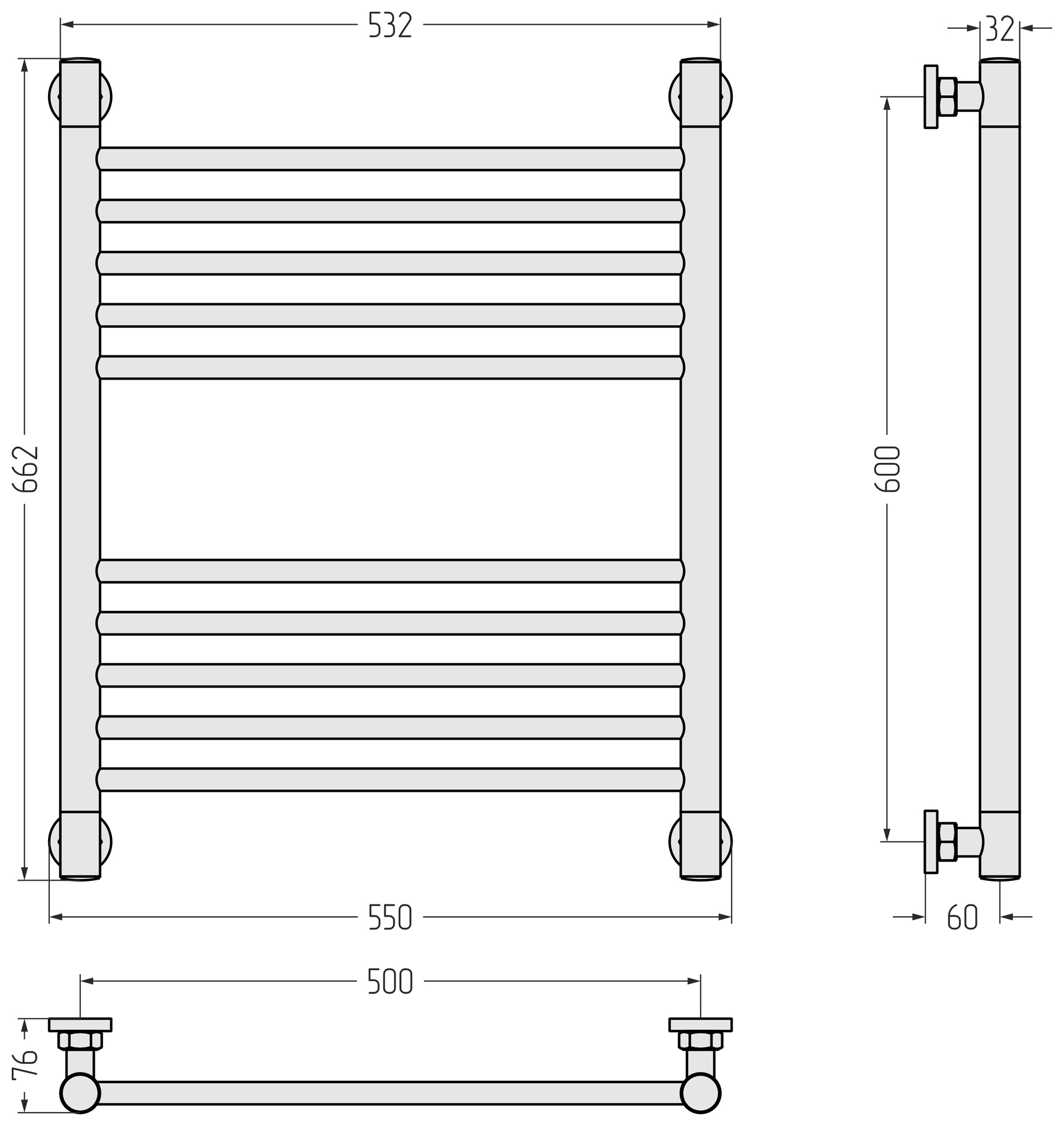 Размер полотенцесушителя - мм