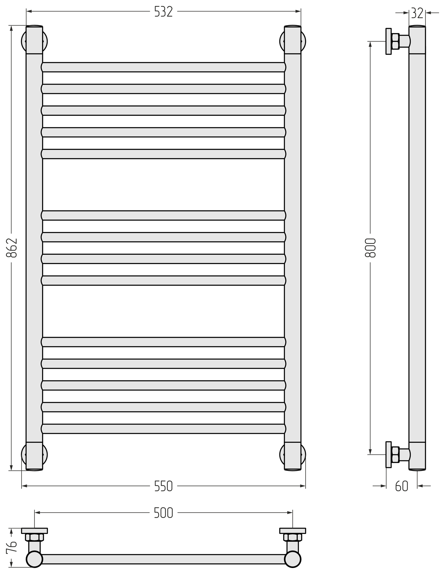 Полотенцесушитель водяной Сунержа Богема+ П14 500x860 мм (прямая перемычка) 03-0220-8050, золото