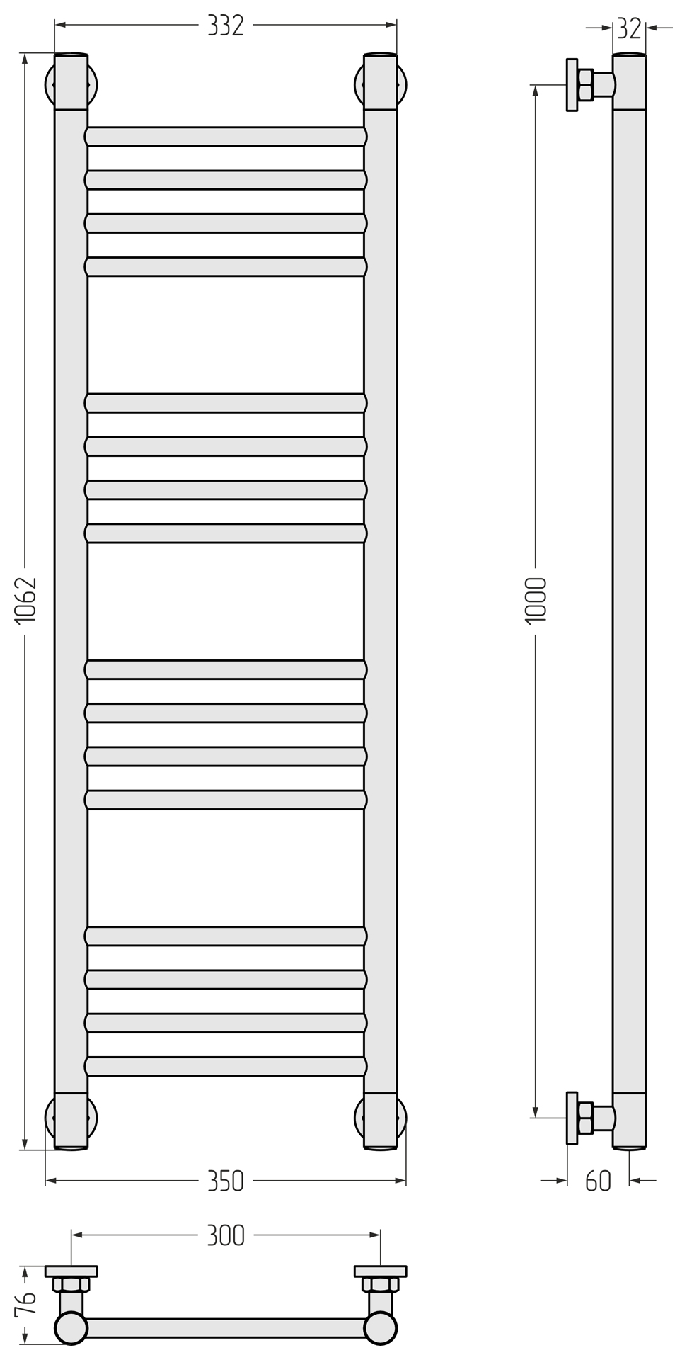 Полотенцесушитель водяной Сунержа Богема+ П16 300x1060 мм (прямая перемычка) 15-0220-1030, тёмный титан муар
