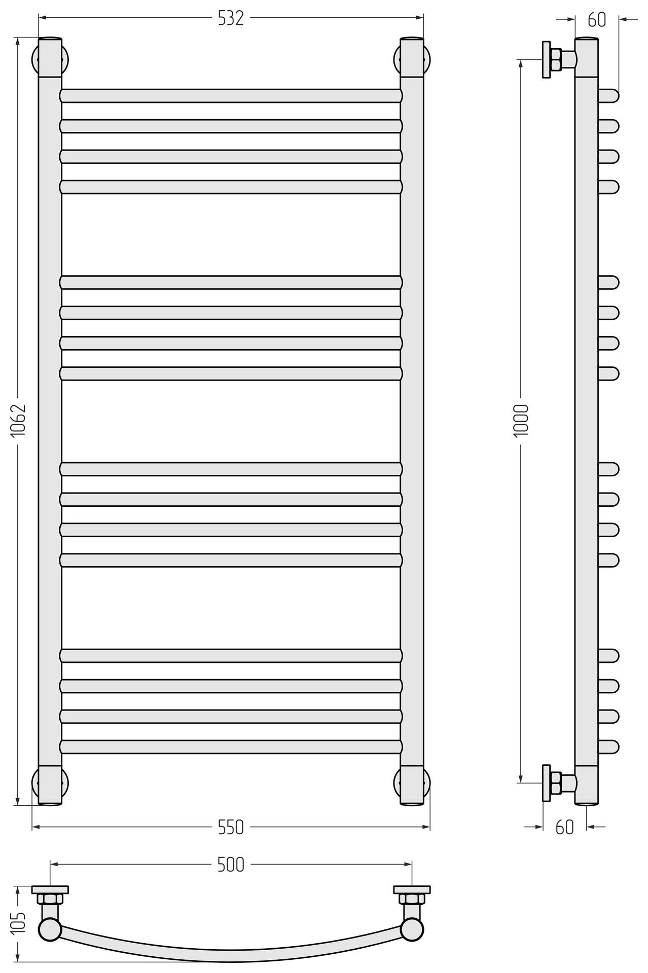Полотенцесушитель водяной Сунержа Богема+ П16 500x1060 мм (выгнутая перемычка) 15-0221-1050, тёмный титан муар