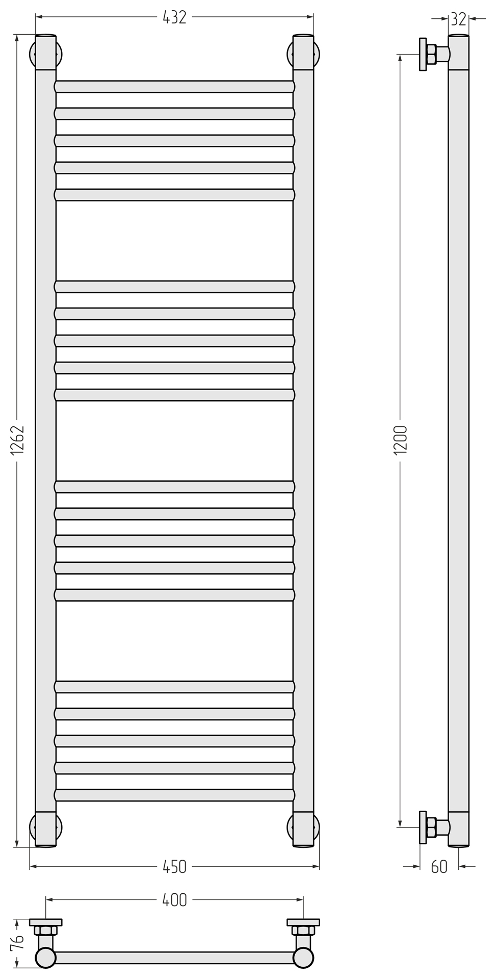 Полотенцесушитель водяной Сунержа Богема+ П20 400x1260 мм (прямая перемычка) 31-0220-1240, чёрный матовый