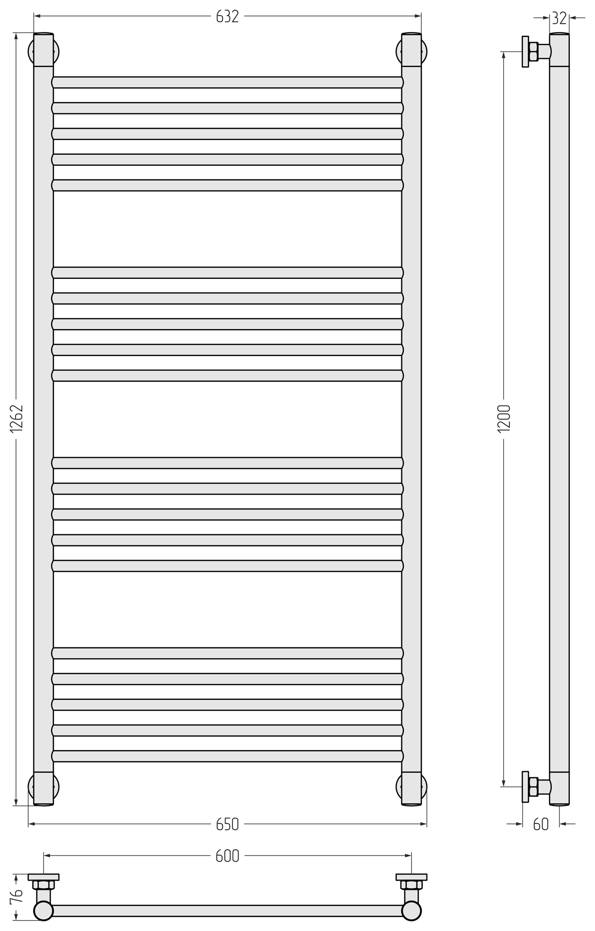 Полотенцесушитель водяной Сунержа Богема+ П20 600x1260 мм (прямая перемычка) 032-0220-1260, золото матовое
