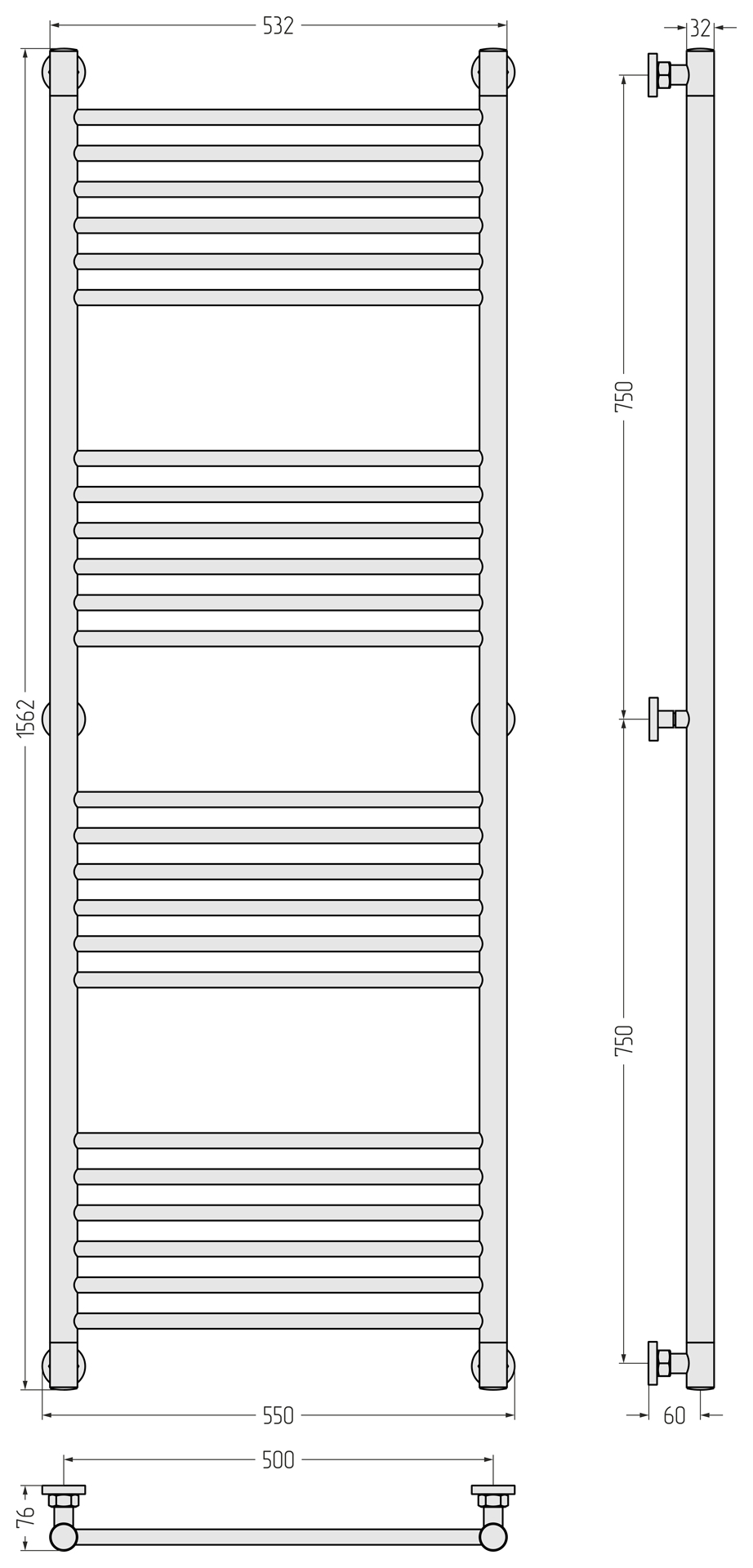 Полотенцесушитель водяной Сунержа Богема+ П24 500x1560 мм (прямая перемычка) 15-0220-1550, тёмный титан муар
