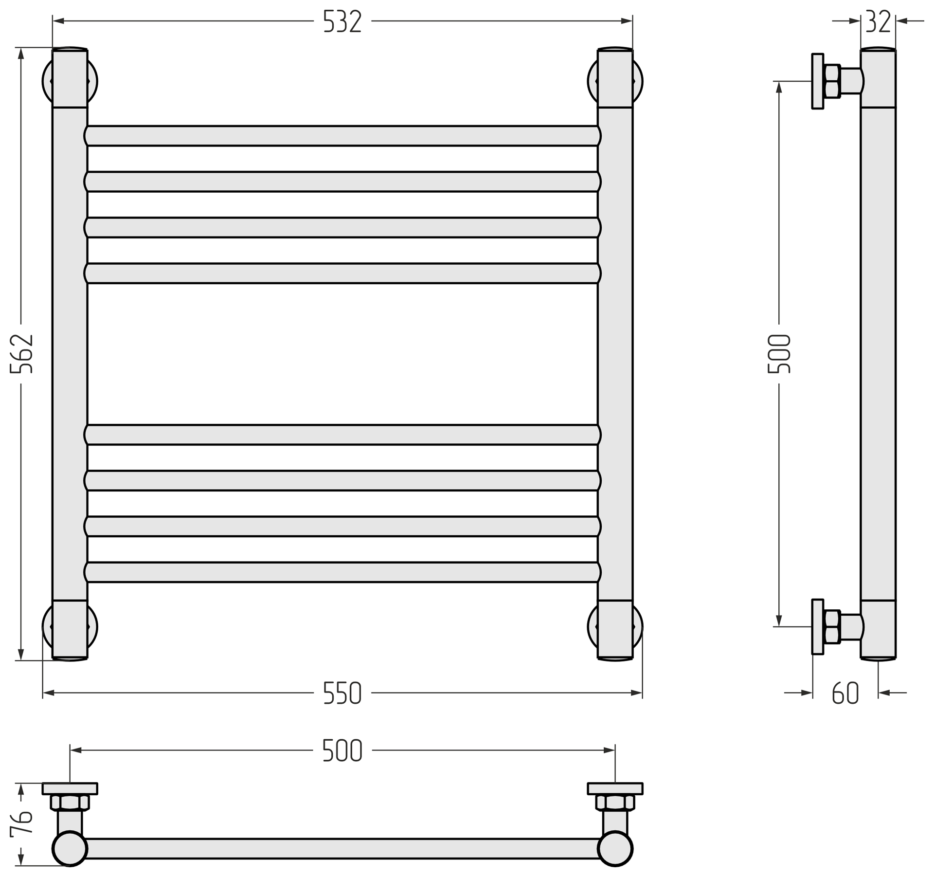 Размер полотенцесушителя - мм