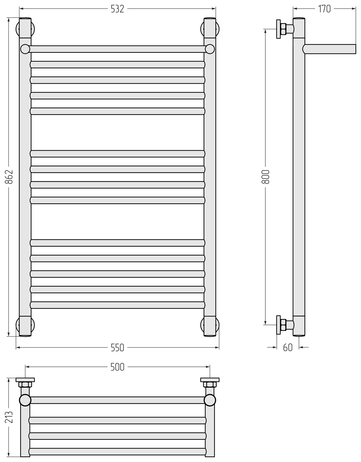 Полотенцесушитель водяной Сунержа Богема+ с полкой П14 500x860 мм 15-0223-8050, тёмный титан муар