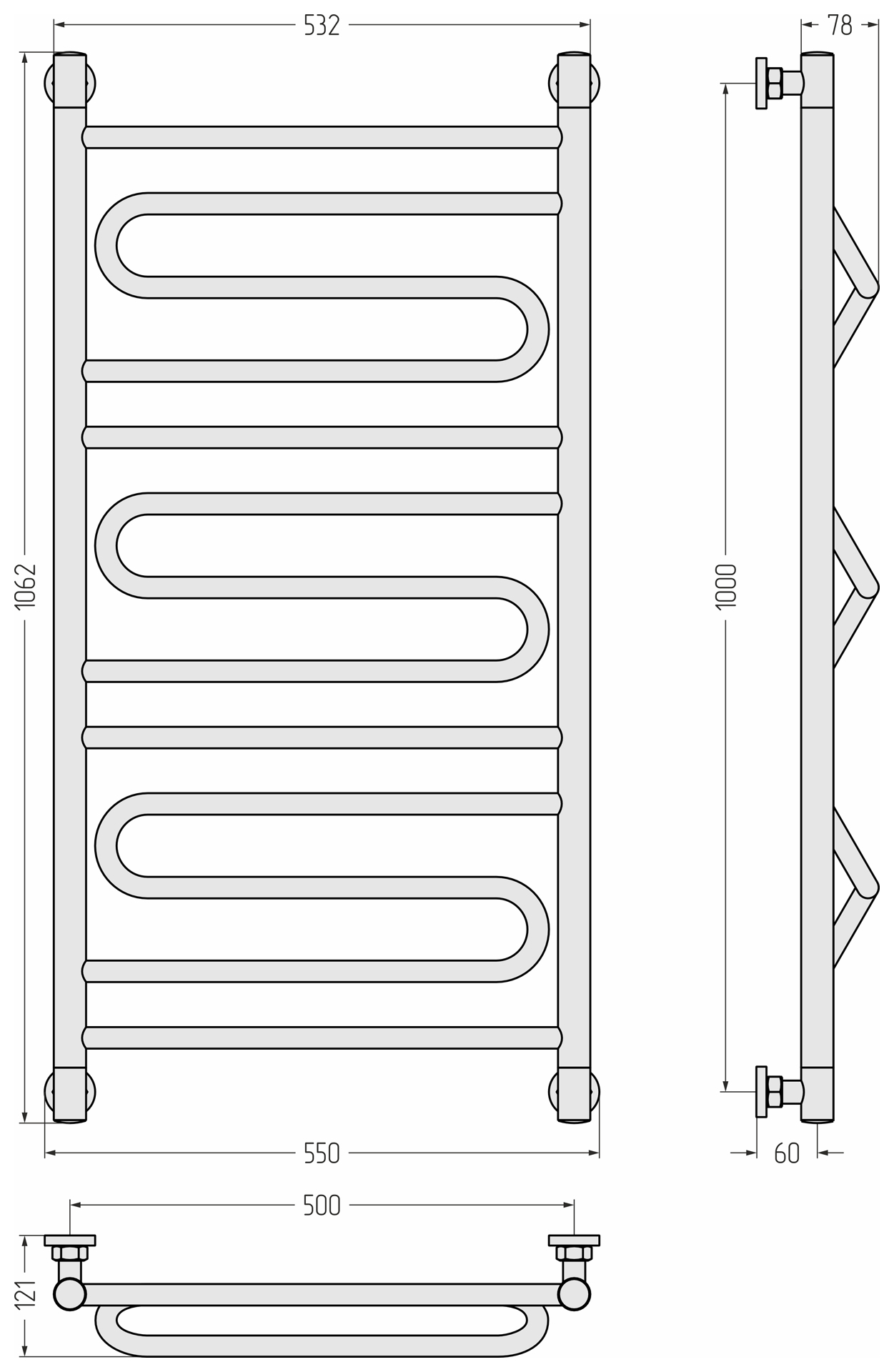 Полотенцесушитель водяной Сунержа Элегия+ 4004-0205-1050, размер 550x1062 мм, 13 перекладин, цвет бордово-фиолетовый.