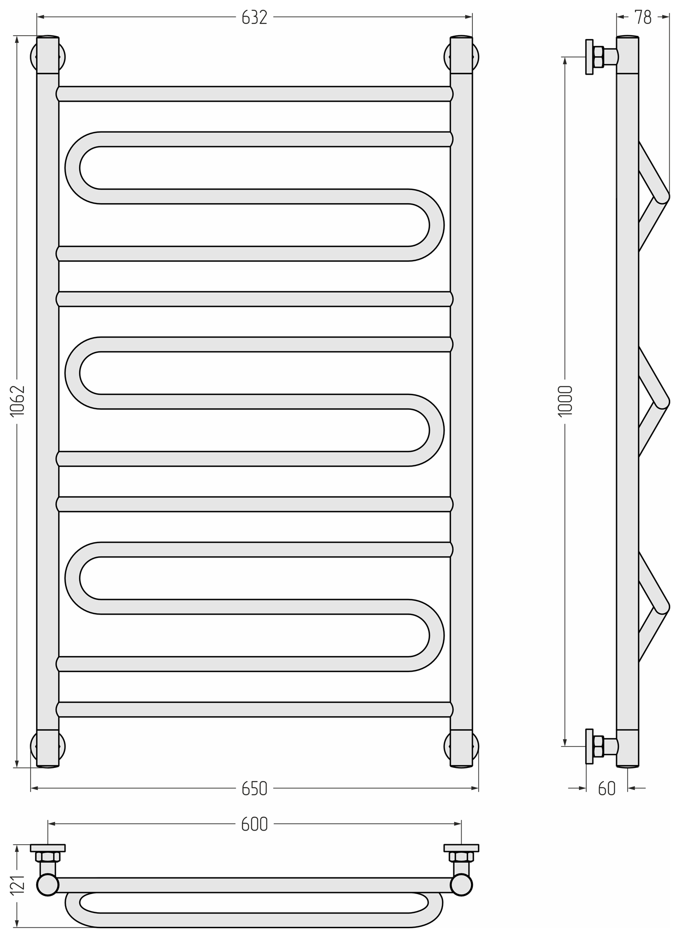 Полотенцесушитель водяной Сунержа Элегия+ П13 600x1060 мм 020-0205-1060, шампань