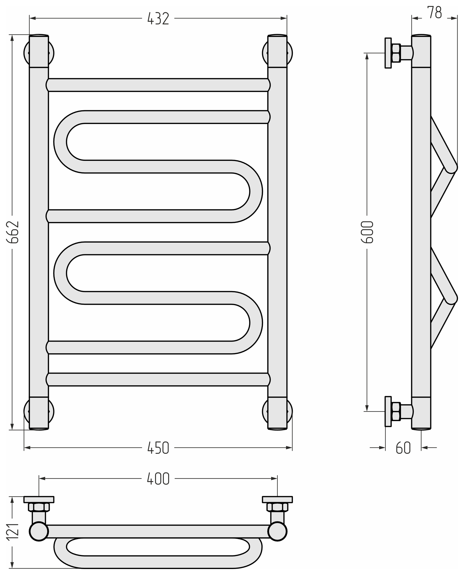 Размер полотенцесушителя - мм