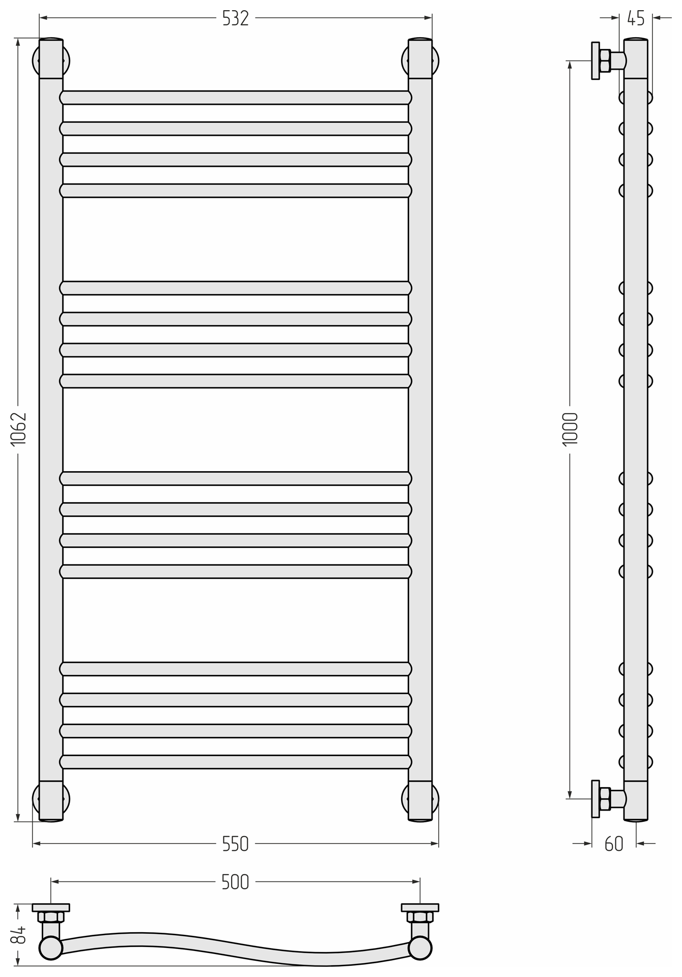 Полотенцесушитель водяной Сунержа Флюид+ П16 500x1060 мм 051-0222-1050, состаренная латунь