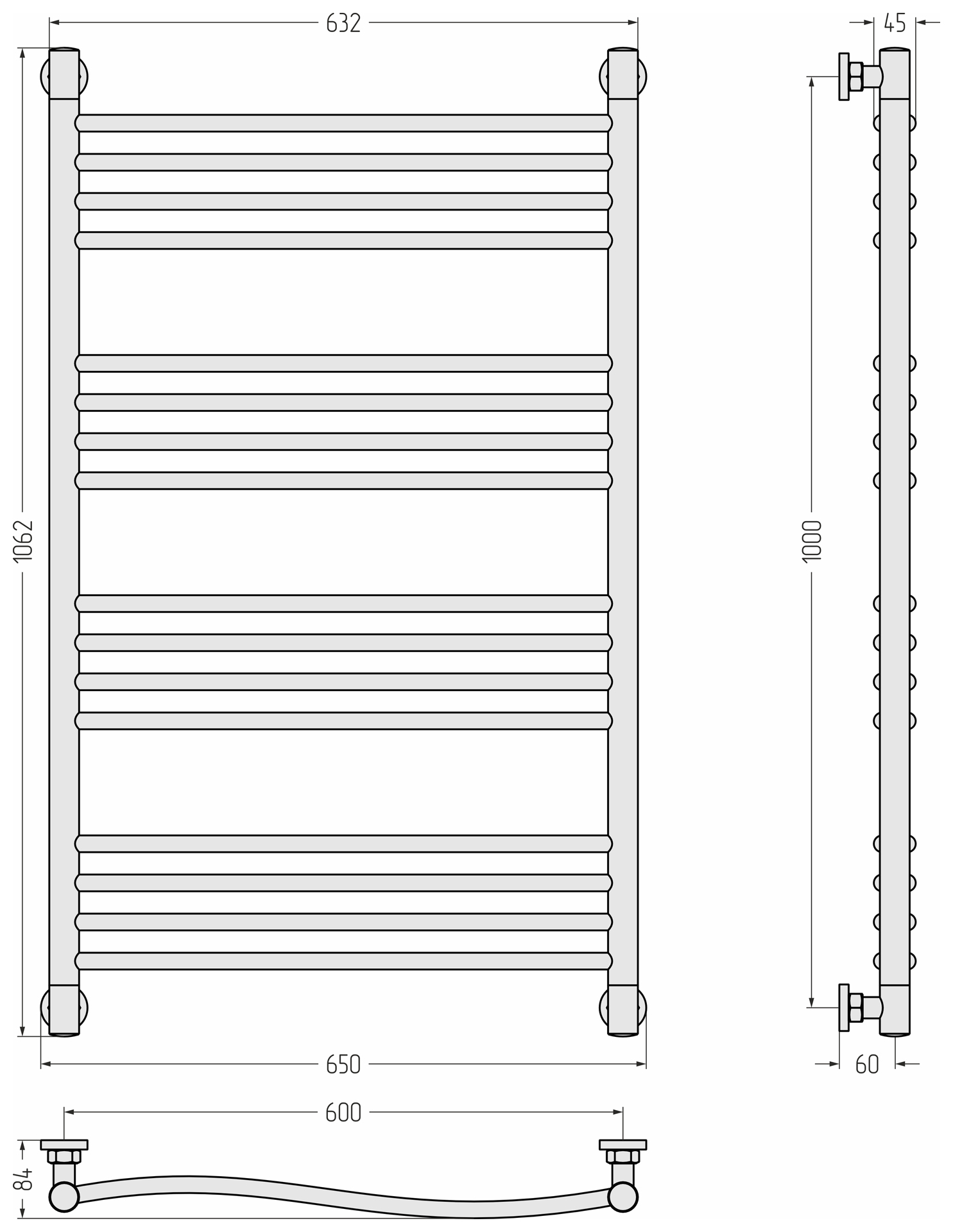Полотенцесушитель водяной Сунержа Флюид+ П16 600x1060 мм 020-0222-1060, шампань