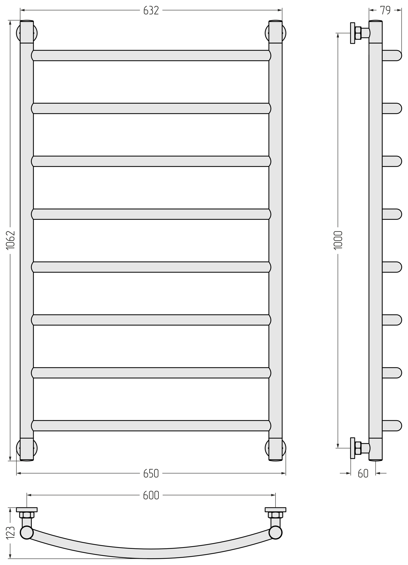 Полотенцесушитель водяной Сунержа Галант+ П8 600x1060 мм 31-0200-1060, чёрный матовый