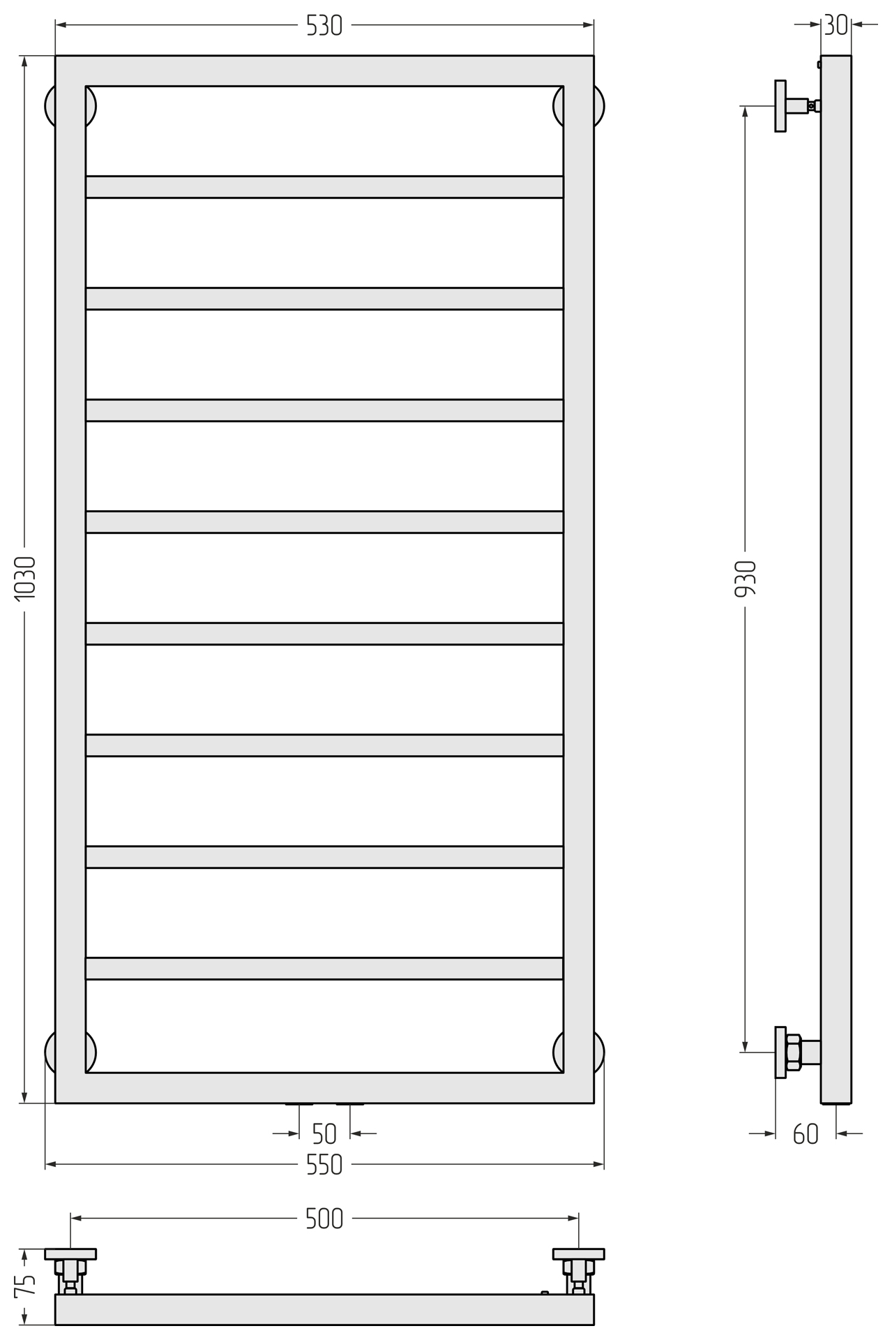 Полотенцесушитель водяной Сунержа Канцлер 051-0254-1050, размер 550x1030 мм, 8 перекладин, цвет состаренная латунь.