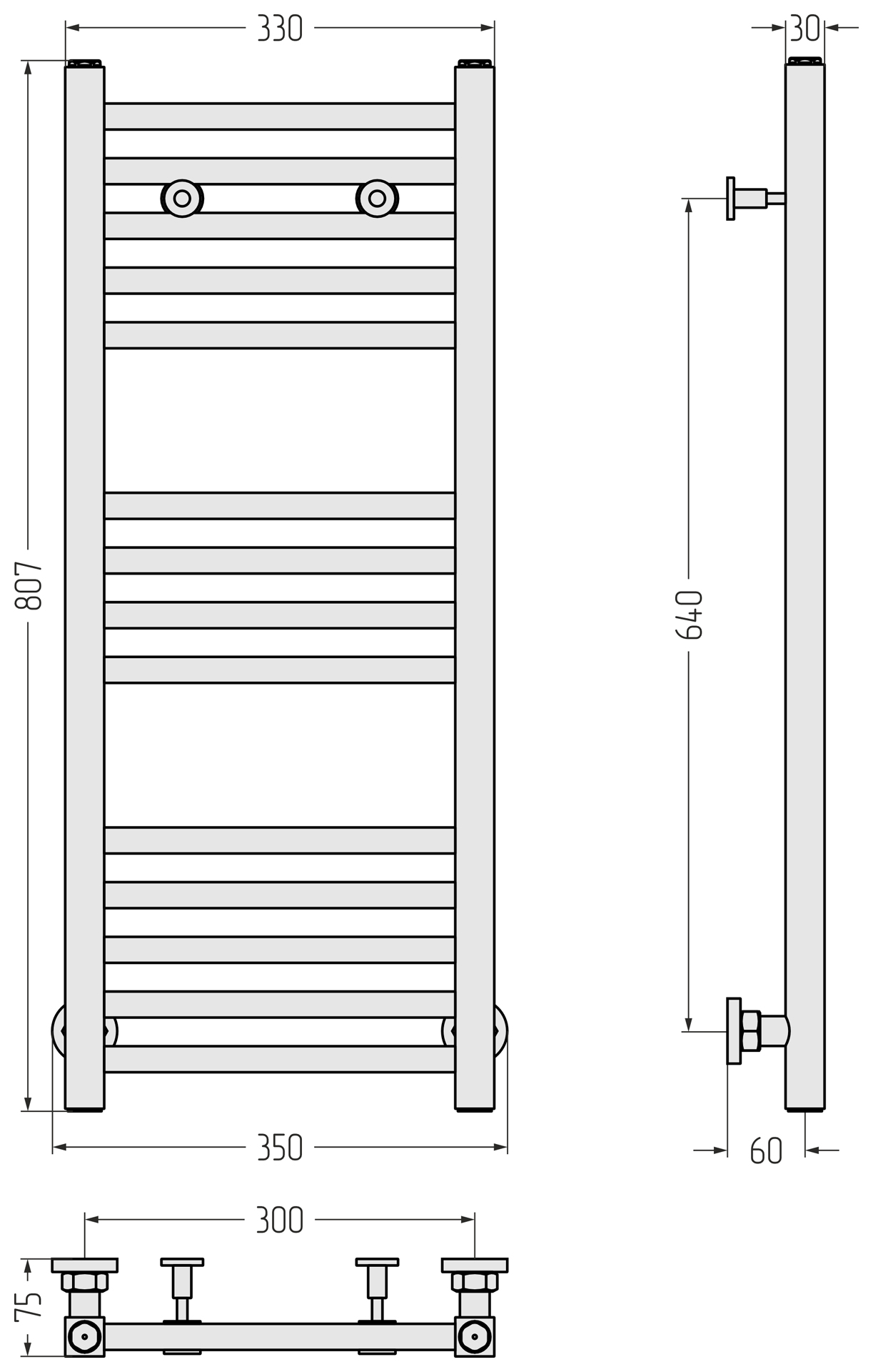 Полотенцесушитель водяной Сунержа Модус П14 300x800 мм 15-0250-8030, тёмный титан муар