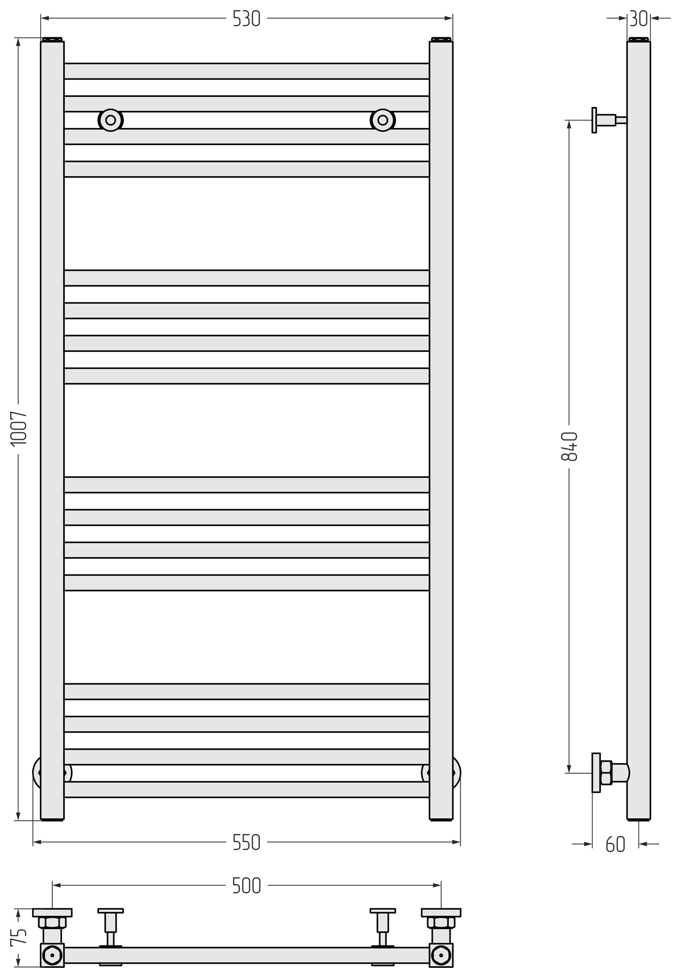 Полотенцесушитель водяной Сунержа Модус П16 500x1000 мм 051-0250-1050, состаренная латунь