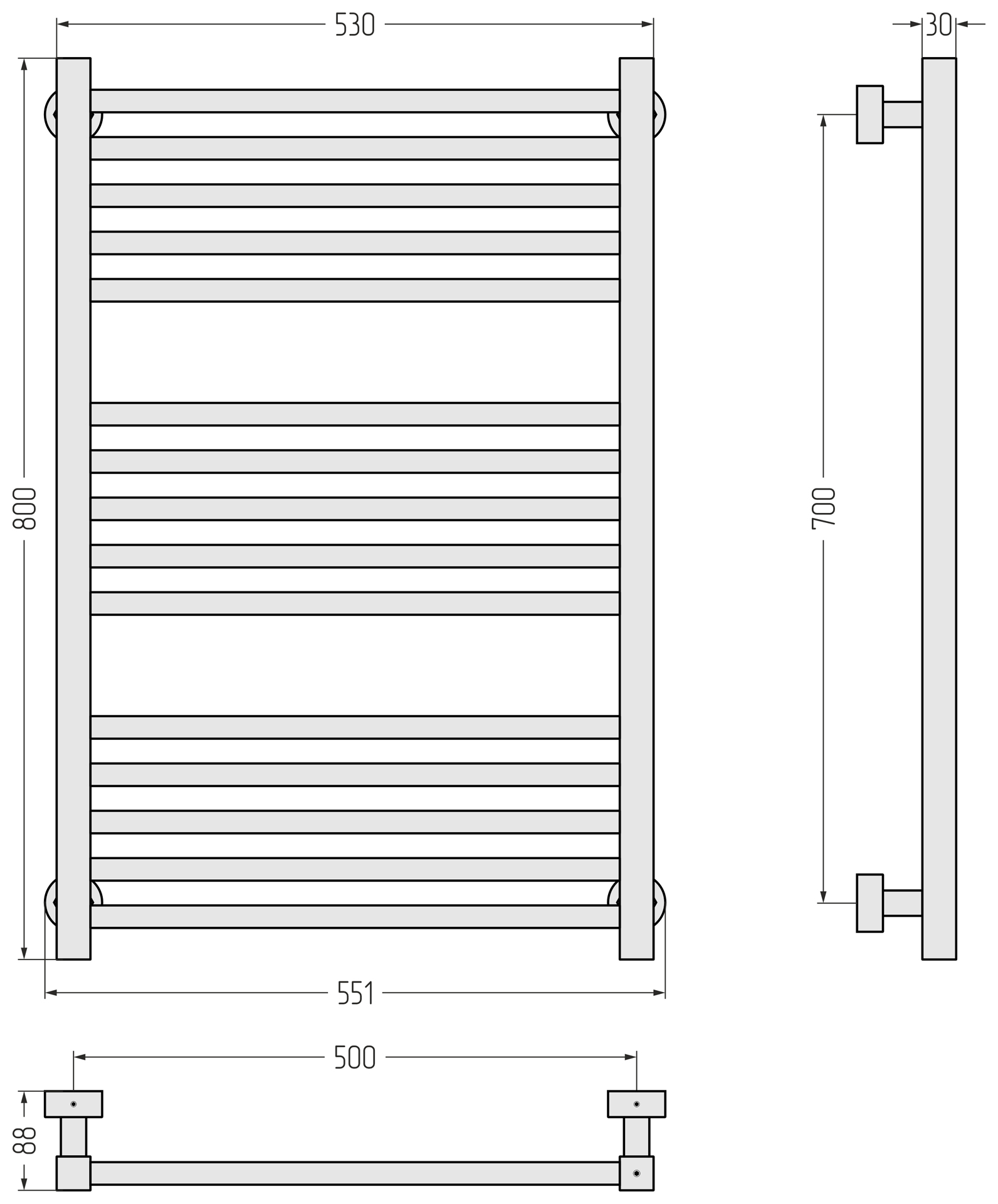 Полотенцесушитель водяной Сунержа Модус PRO П15 500x800 мм 071-0450-8050, сатин