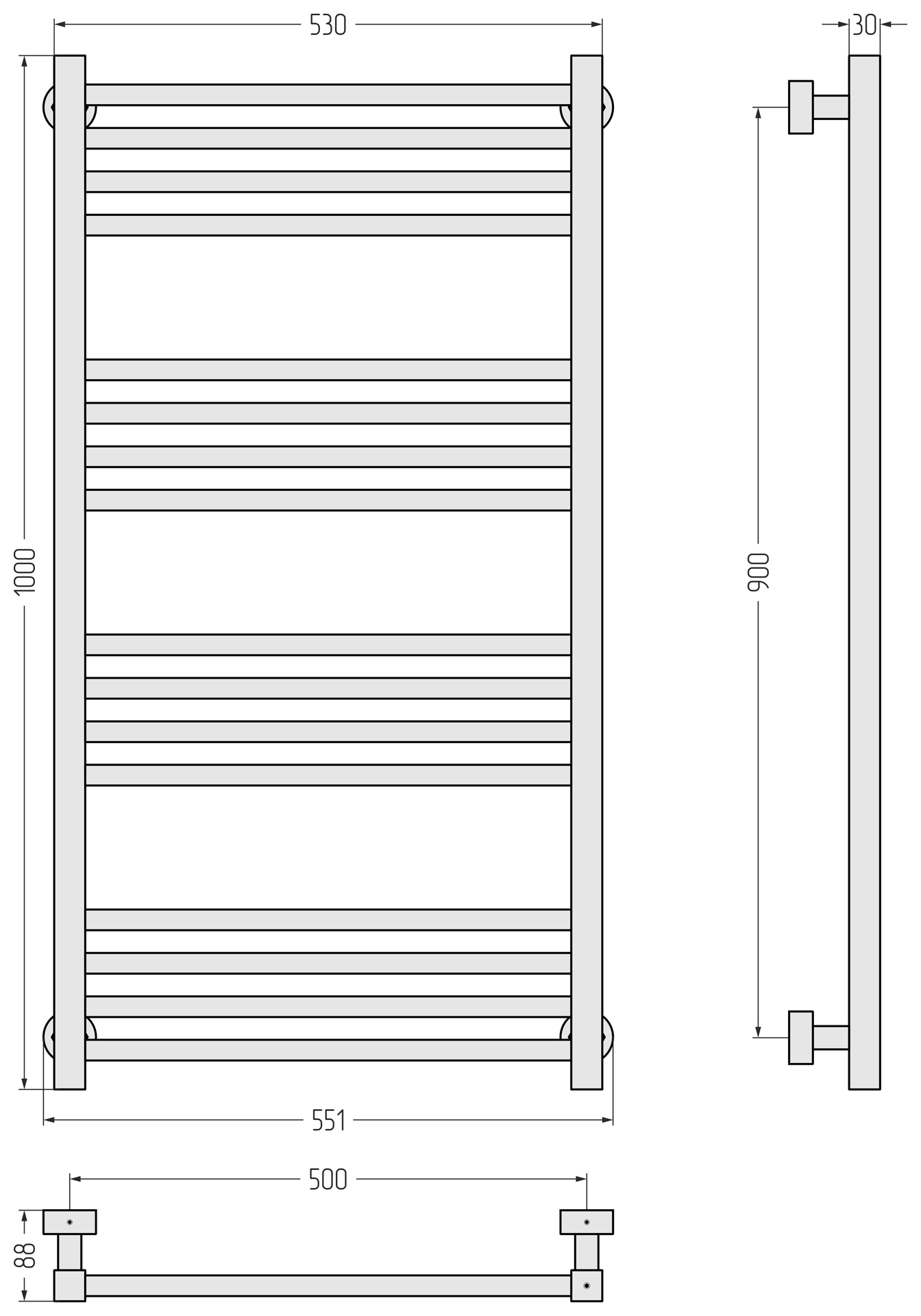 Полотенцесушитель водяной Сунержа Модус PRO П16 500x1000 мм 00-0450-1050, хром