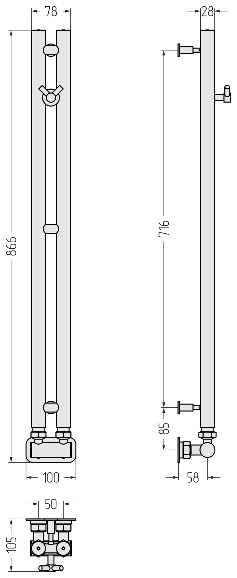 Полотенцесушитель водяной Сунержа Нюанс EU50+ П2 50x870 мм 00-0212-0840, хром