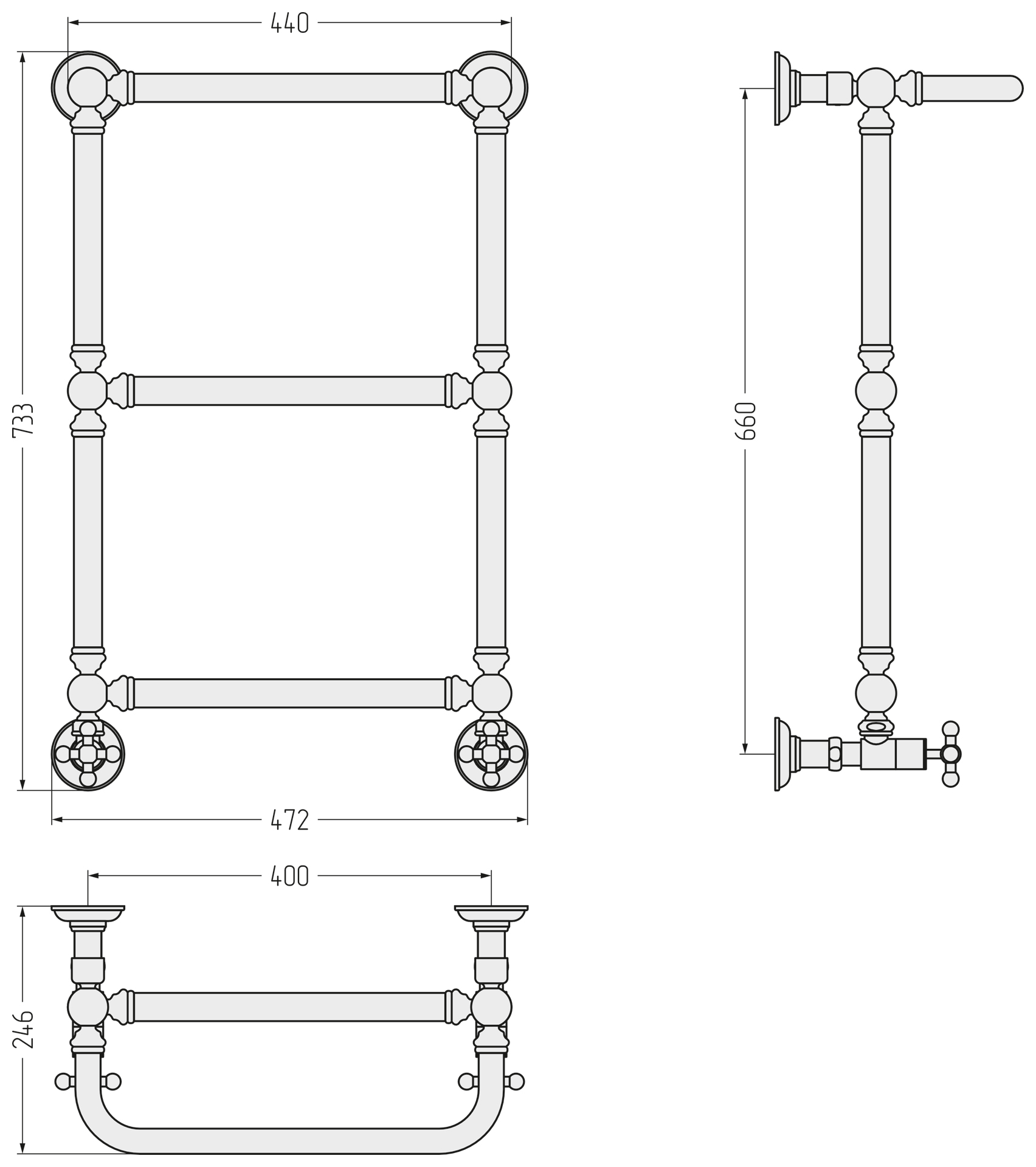 Полотенцесушитель водяной Сунержа Ренессанс П3 400x730 мм 03-0281-6640, золото