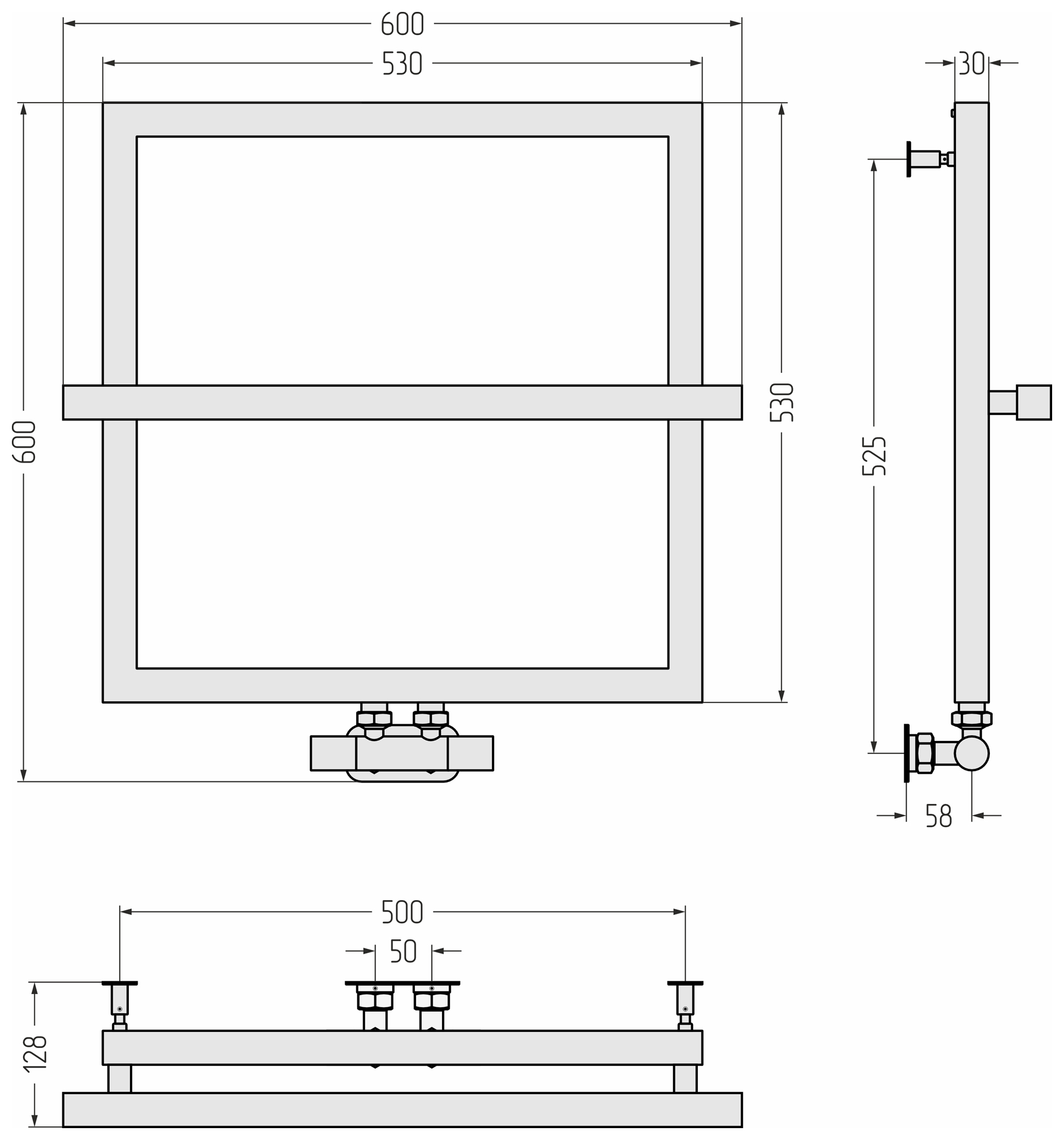 Полотенцесушитель водяной Сунержа Штиль EU50+ П3 500x600 мм 00-0256-5353, хром