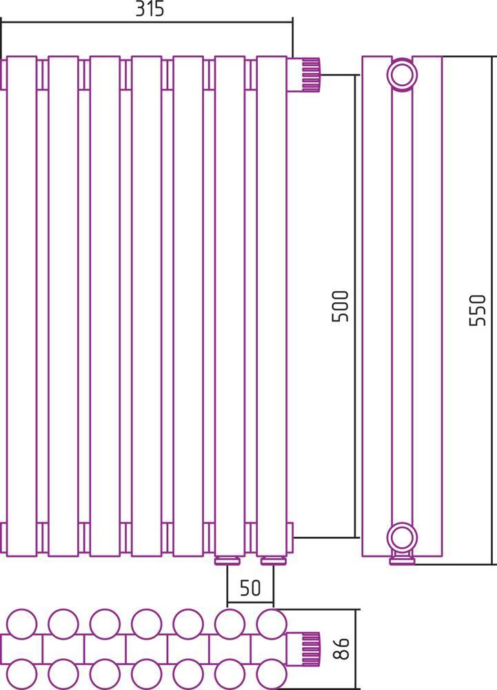 Радиатор Сунержа Эстет-11 315х500 мм (7 секций) 00-0312-5007 нижнее правое подключение