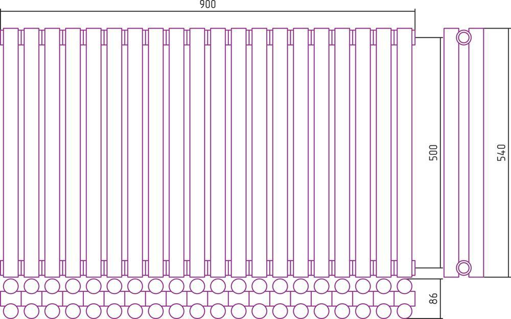 Радиатор Сунержа Эстет-11 900х500 мм (20 секций) 00-0302-5020 универсальное подключение