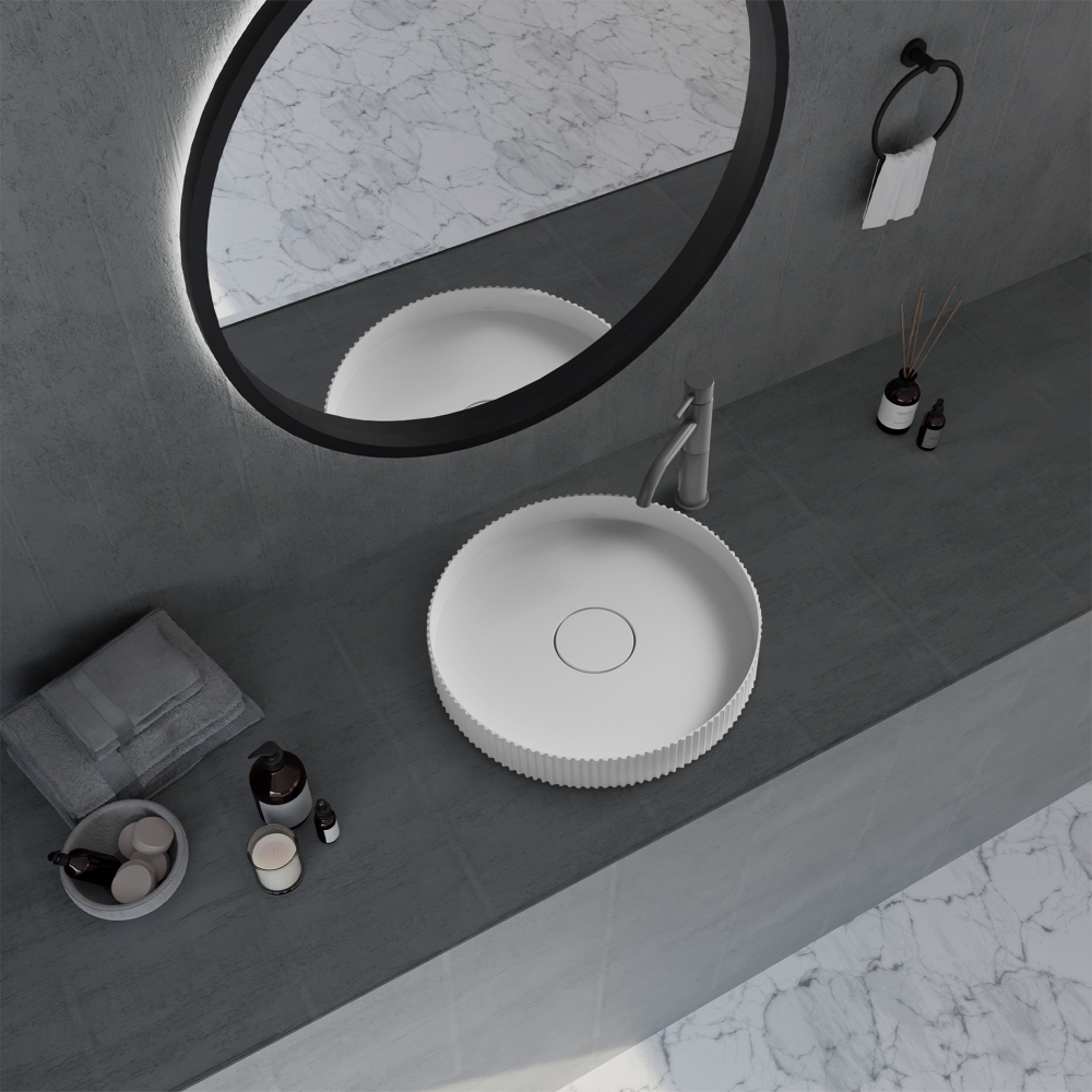 Раковина-чаша Abber Stein 40 см AS2604, цвет белый матовый. Накладка на слив и клапан в комплекте.