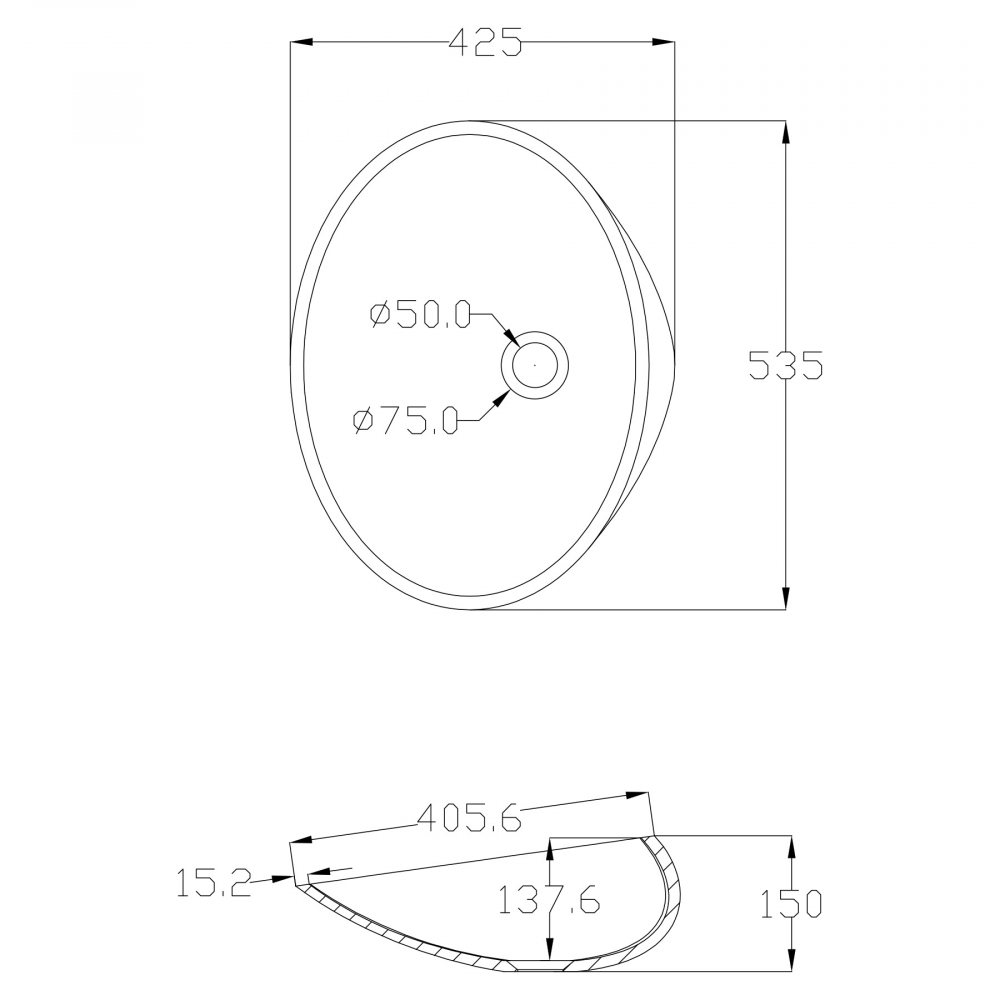 Раковина-чаша Abber Stein 53 см AS2616 с донным клапаном, цвет белый матовый.