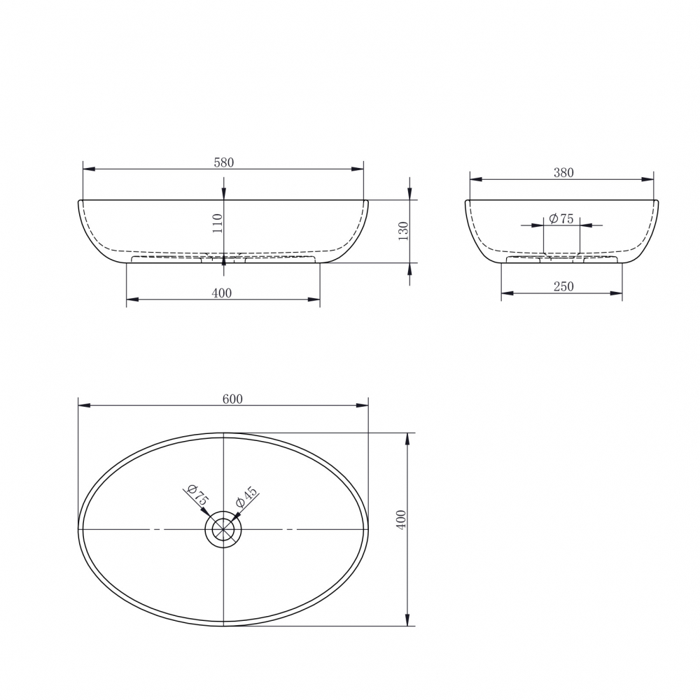 Раковина-чаша Abber Stein 60 см AS2619 с донным клапаном, цвет белый матовый.