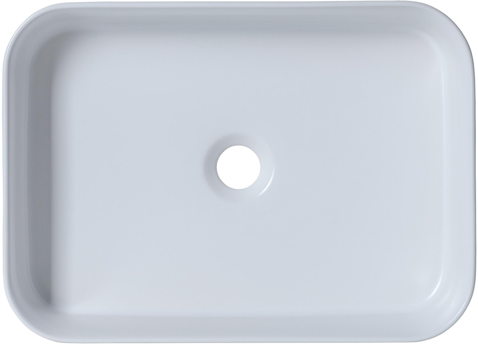 - Раковина не имеет отверстия для перелива и также не имеет готового отверстия под смеситель, что придает ей минималистичный и сдержанный вид.