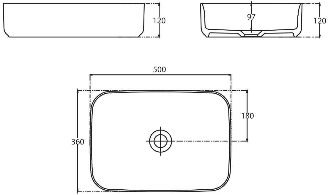 - Раковина не имеет отверстия для перелива и также не имеет готового отверстия под смеситель, что придает ей минималистичный и сдержанный вид.