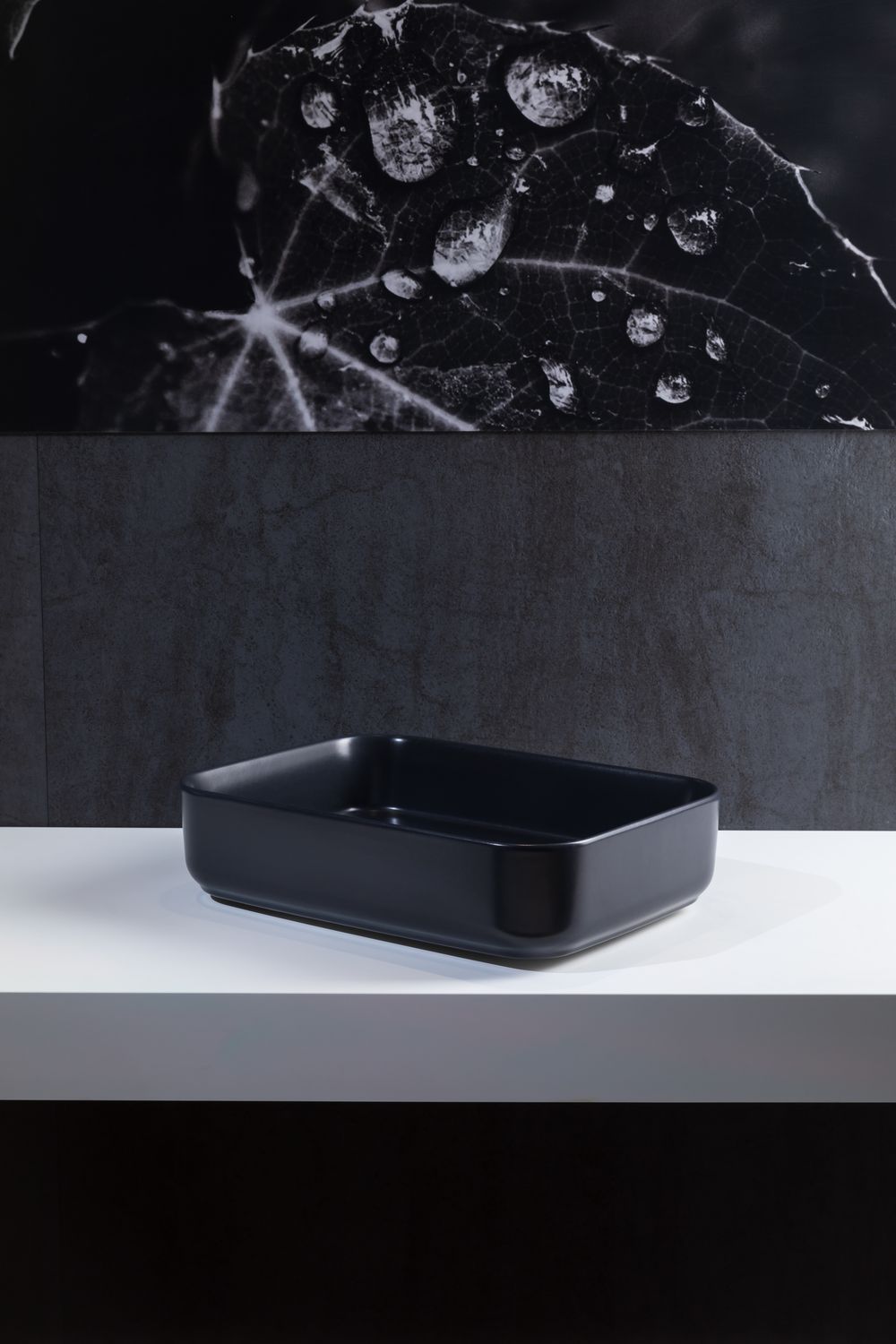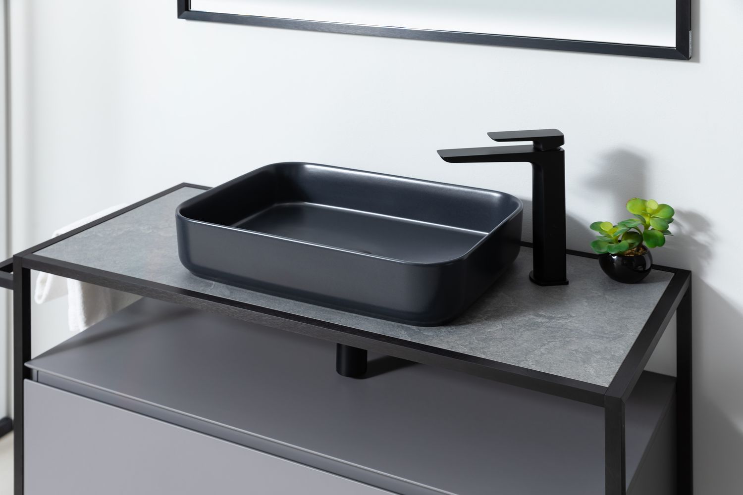 - Накладная раковина для ванной комнаты Allen Brau Fantasy Quad в цвете «Черный матовый» шириной 50 см изготовлена из высококачественной керамики, что обеспечивает прочность, долговечность и элегантный внешний вид.