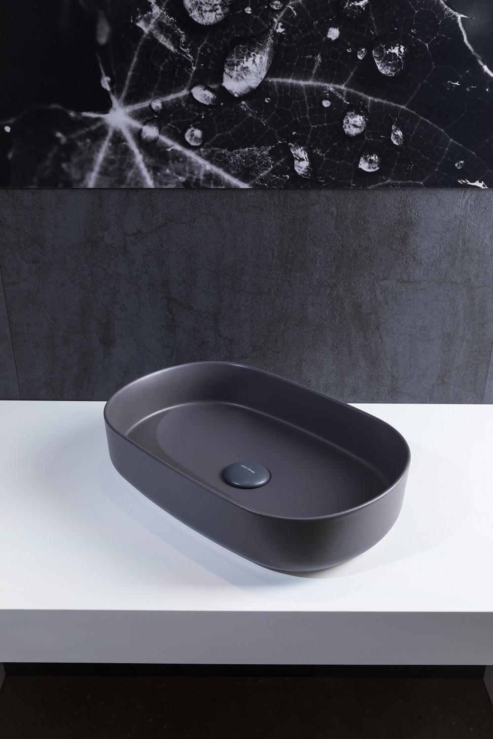 - Накладная раковина для ванной комнаты Allen Brau Fantasy Oval в цвете «Антрацит» шириной 55 см изготовлена из прочной и эстетичной керамики, что придает ей изящный внешний вид и обеспечивает долговечность.