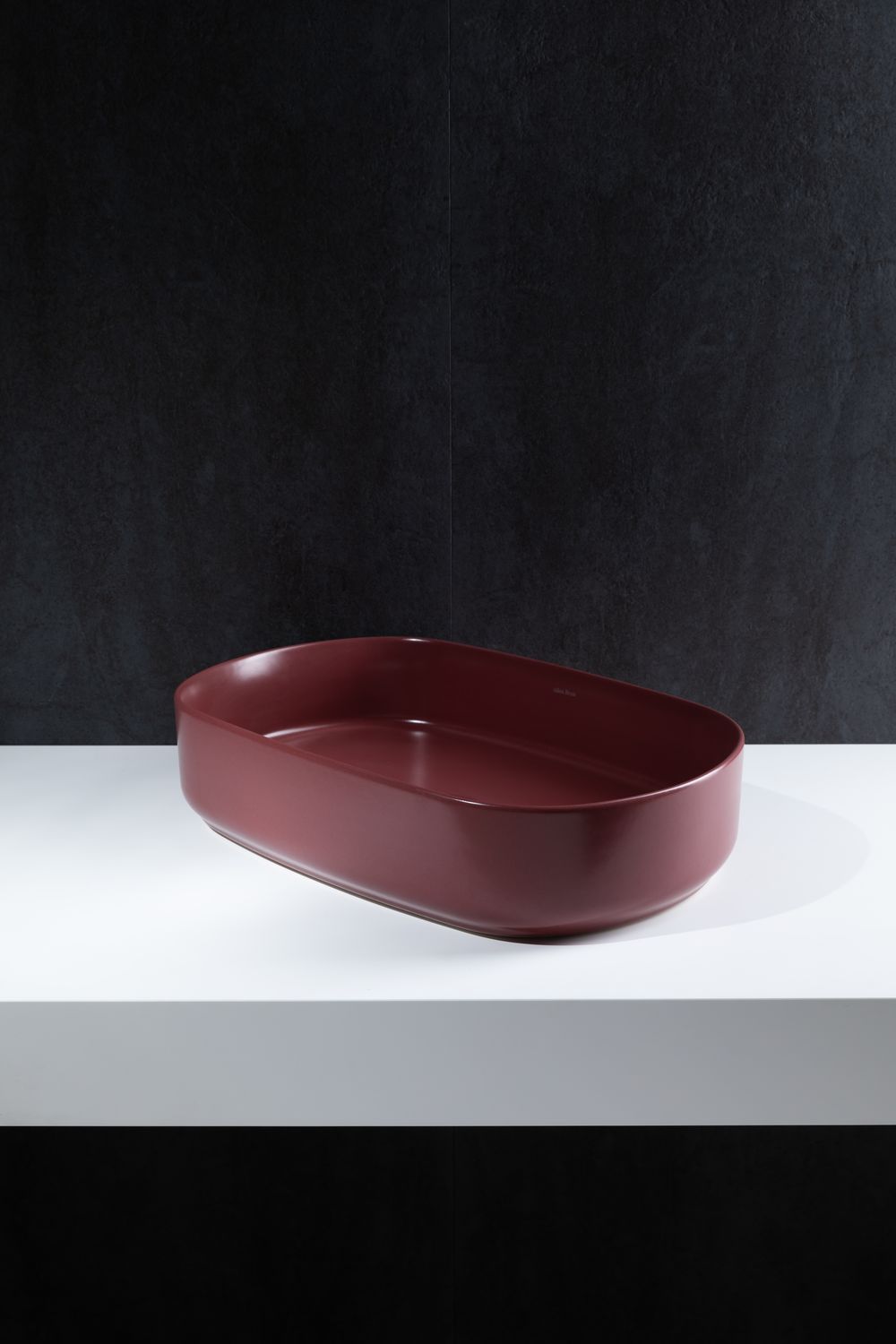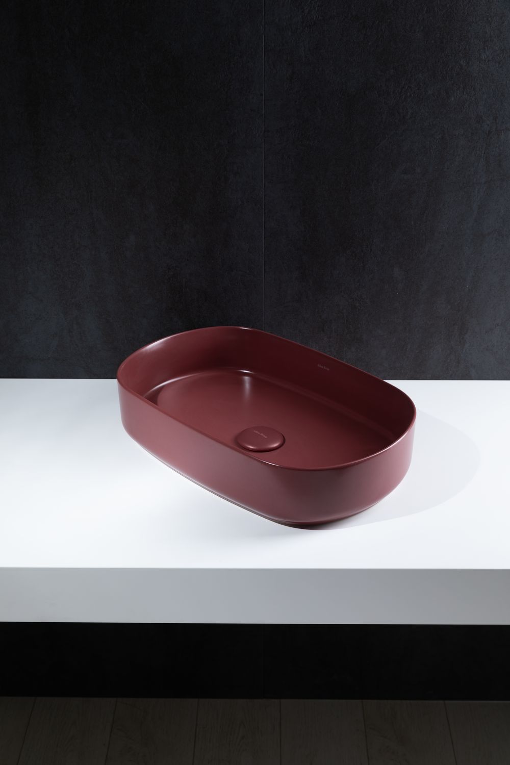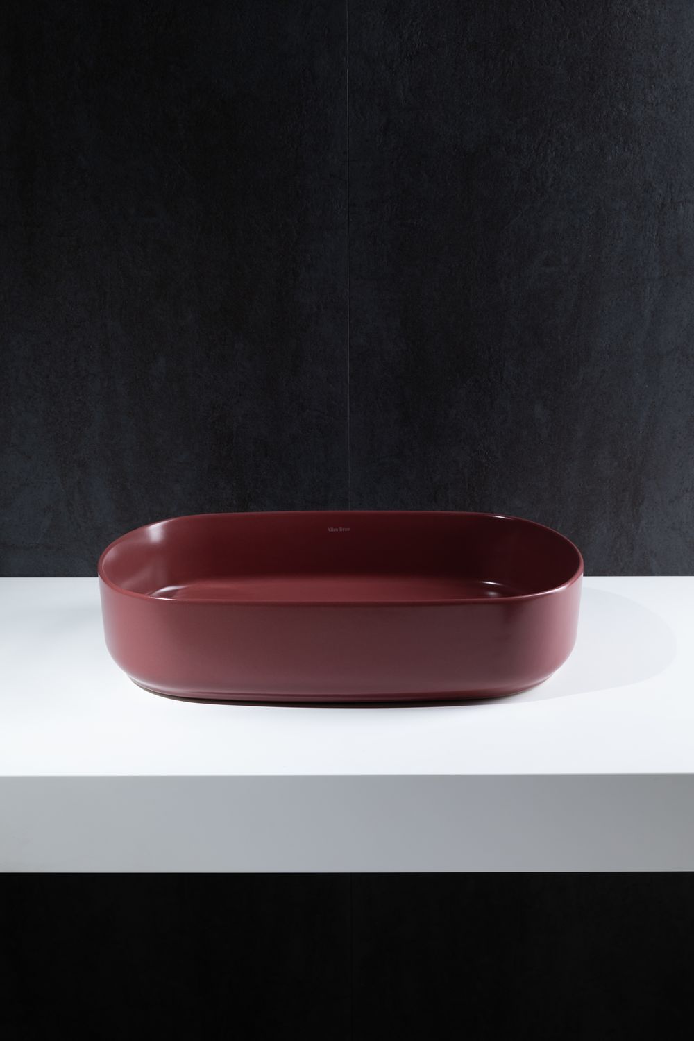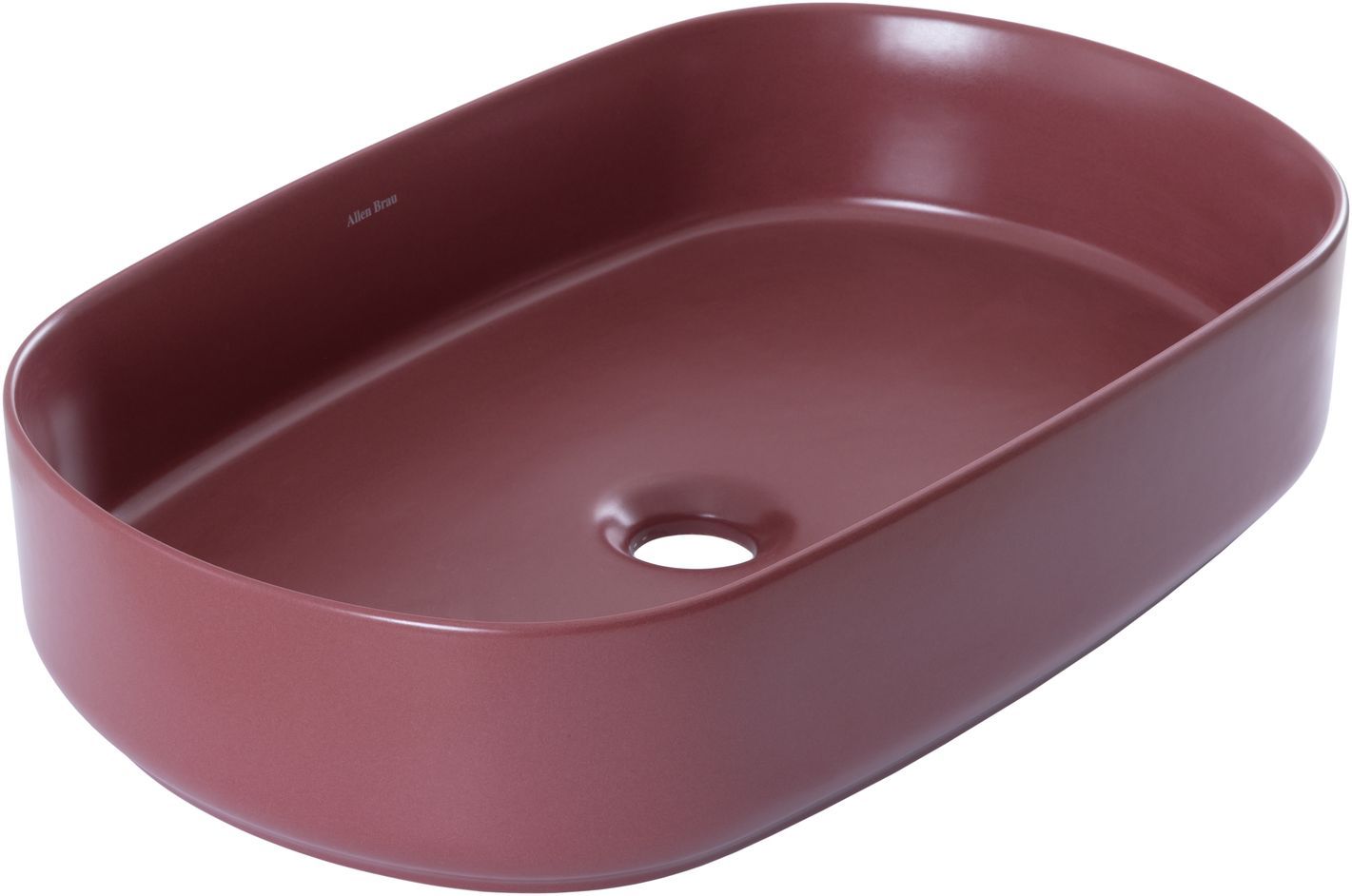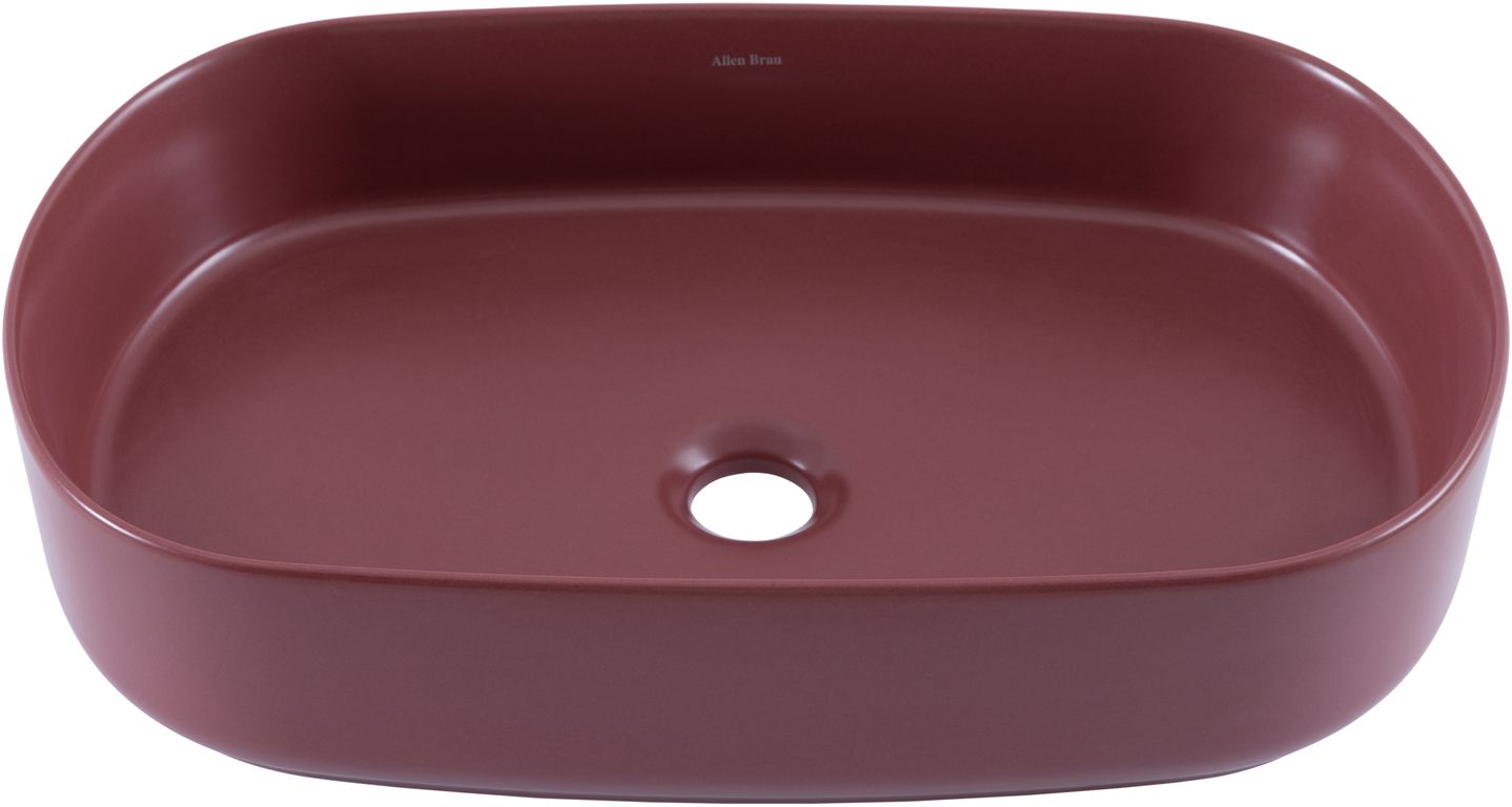 - Накладная раковина для ванной комнаты Allen Brau Fantasy Oval в цвете «Бордо» шириной 55 см изготовлена из прочной и эстетичной керамики, что придает ей изящный внешний вид и обеспечивает долговечность.