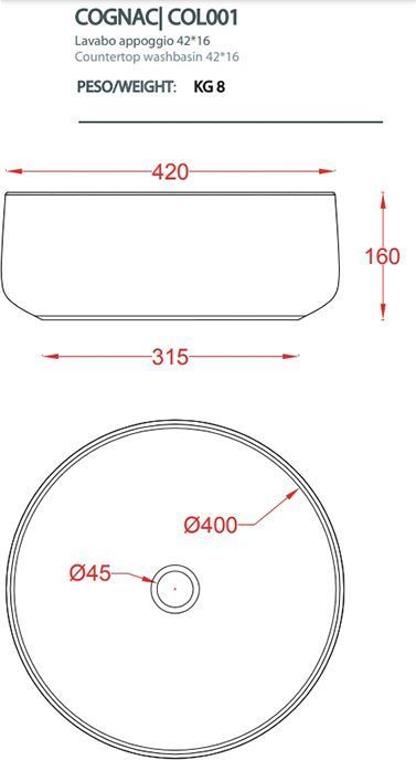 Раковина-чаша ArtCeram Cognac 42 см COL001 43 00, green foresta