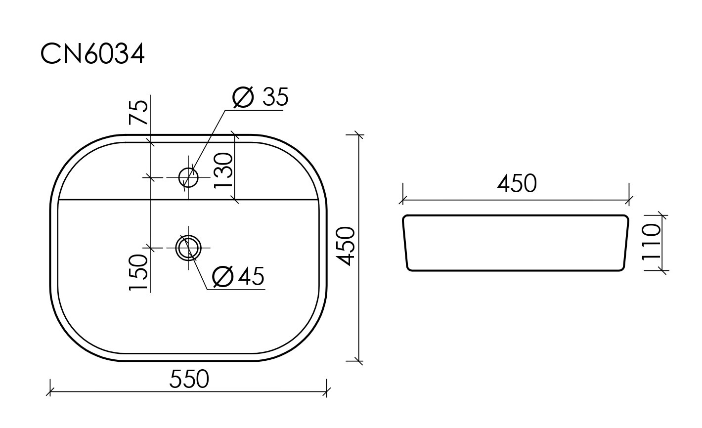 Раковина-чаша Ceramicanova Element CN6034, размер 550х450 мм. Цвет белый.