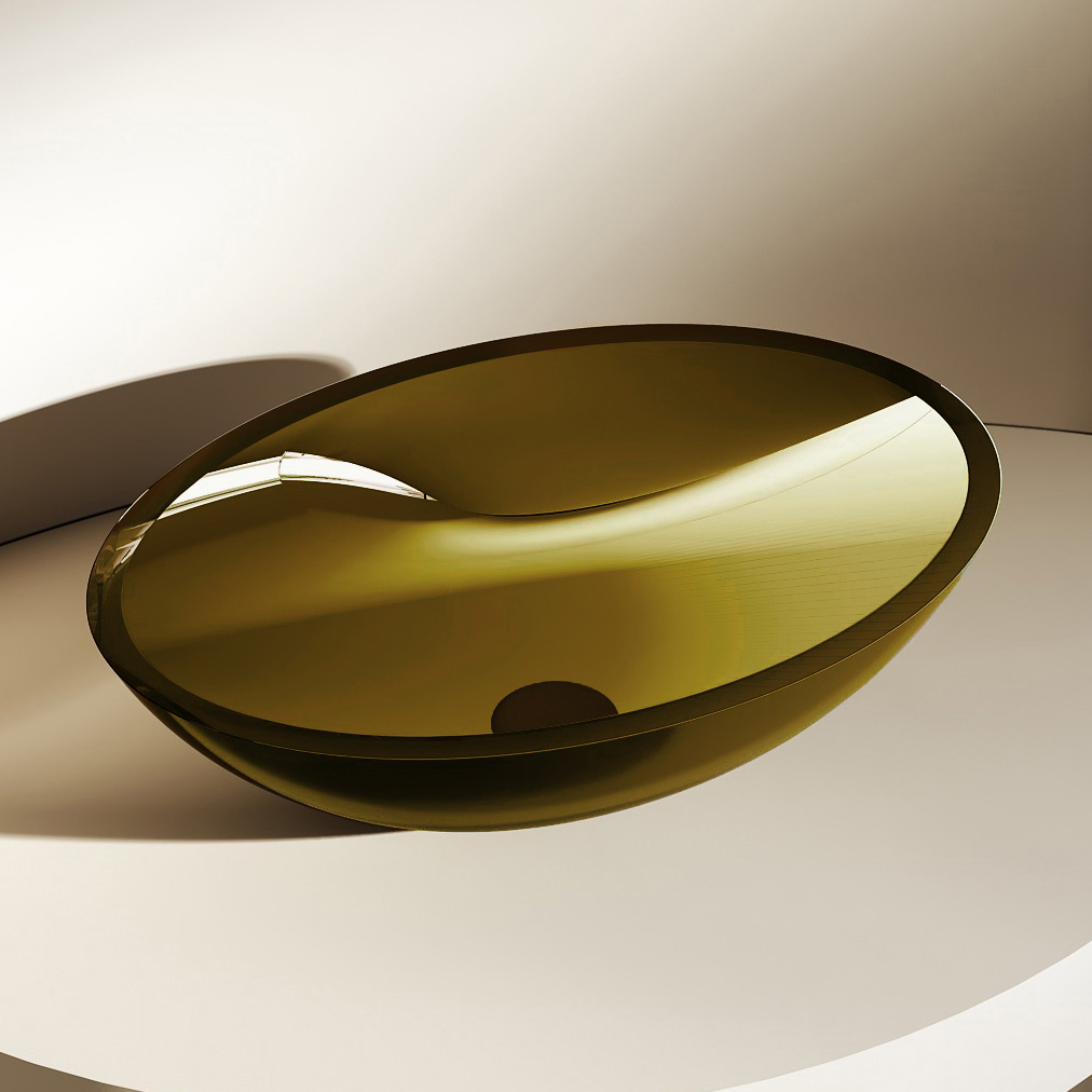 Раковина-чаша прозрачная Abber Kristall 50 см AT2802Vesuvian, материал полиэфирная смола, цвет оливковый.