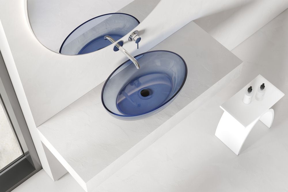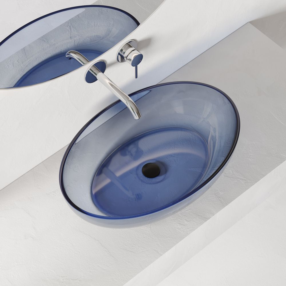 Раковина-чаша прозрачная Abber Kristall 60 см AT2801Saphir, материал полиэфирная смола, цвет синий.